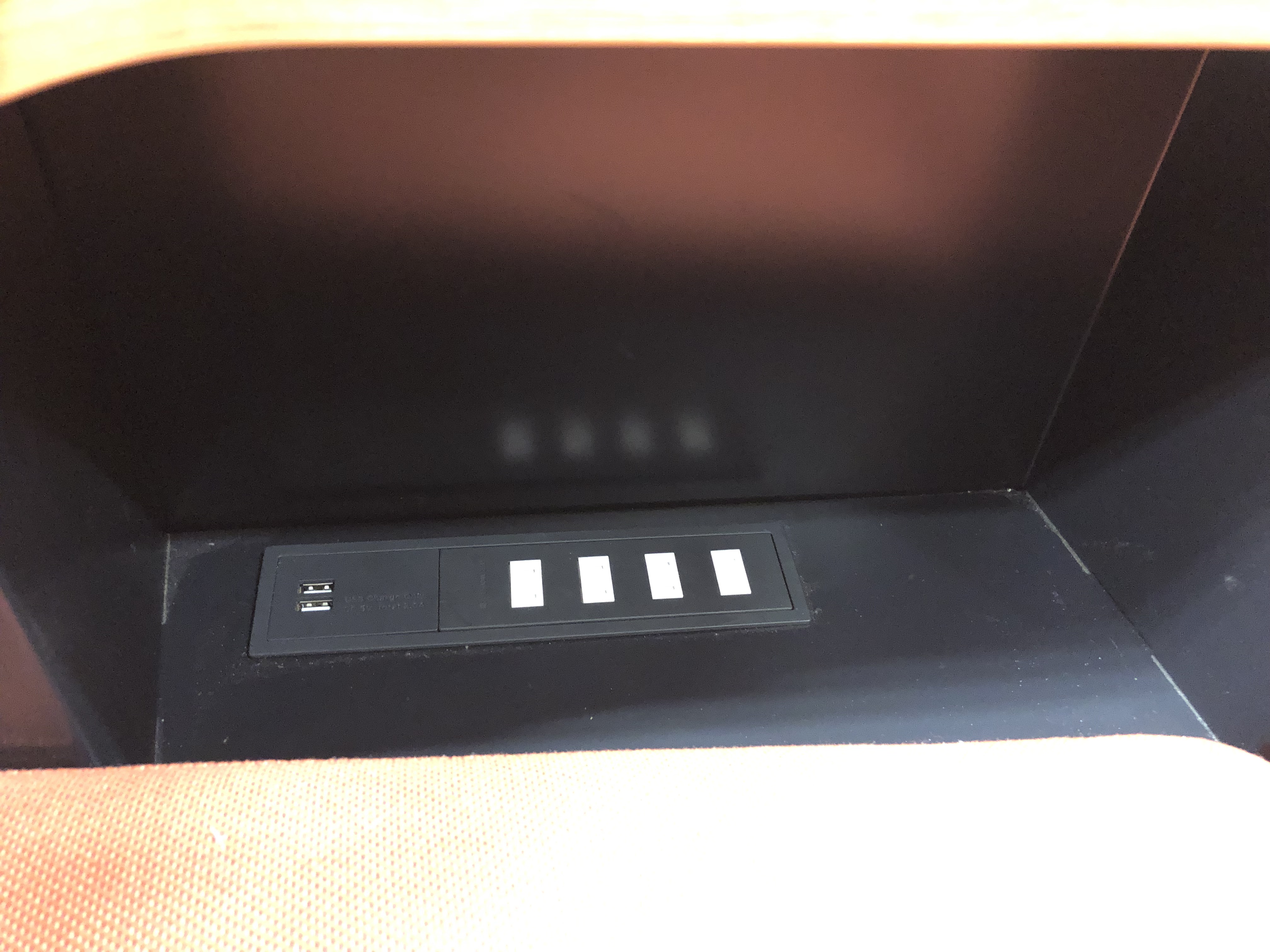 また電源やUSB端子、資料や手荷物が置ける場所など、