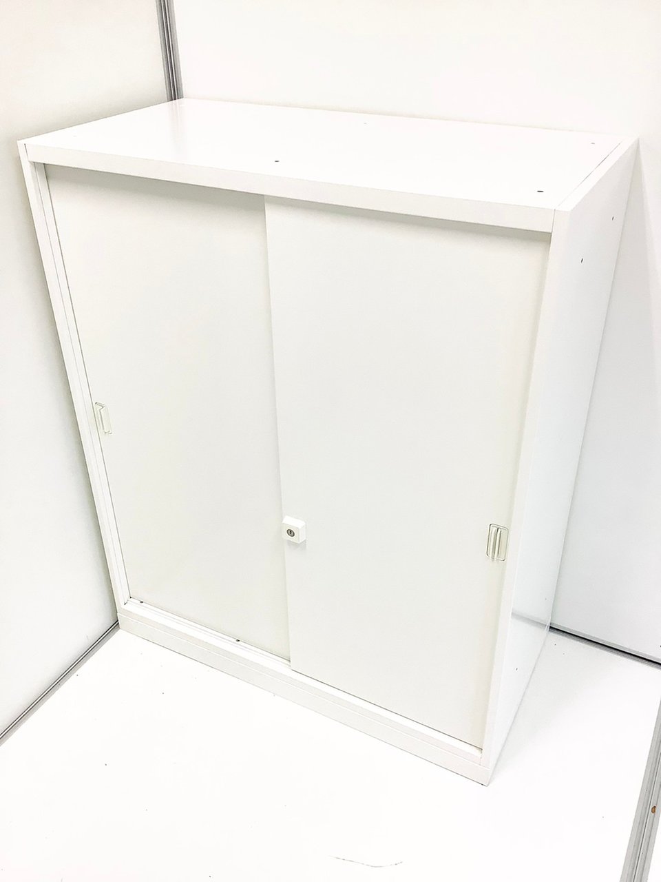スライド式の扉のため導線を邪魔しません!使い勝手抜群の2枚引き違い書庫が入荷! ■オカムラ/レクトライン/ホワイト 2枚引き戸