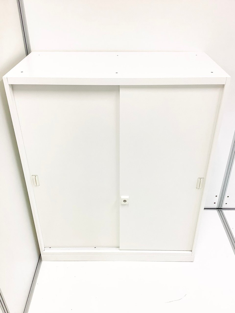 カウンターとしてもおすすめ!使い勝手抜群の天板付き2枚引き違い書庫が入荷! ■オカムラ/レクトライン/ホワイト 2枚引き戸 ホワイト天板付き