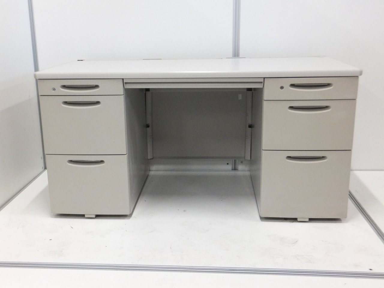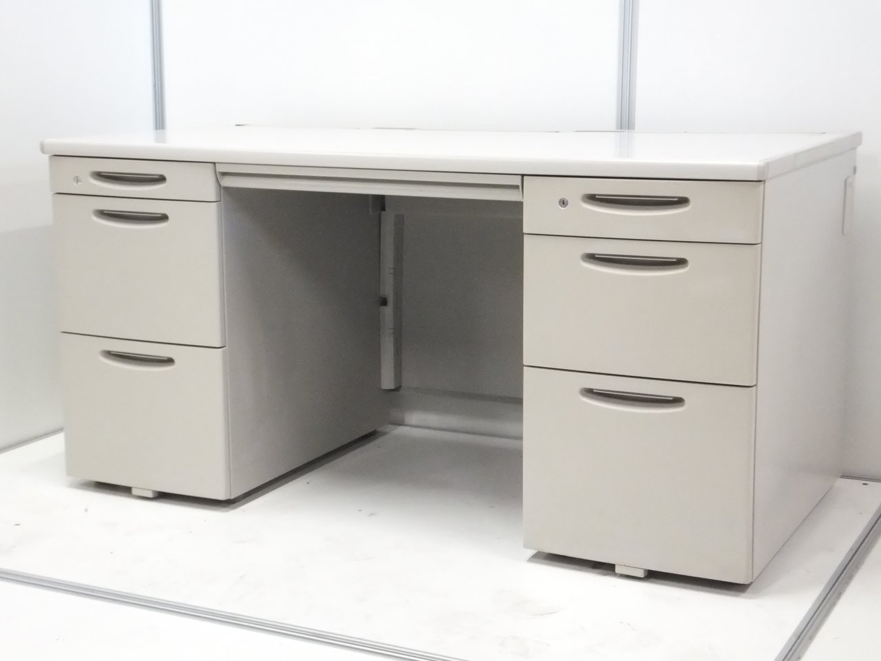 【KS】【ゆとりのワークスペース!】■オカムラ製 両袖デスク W1400mm ■書類の大量収納が可能!- 茨城南店