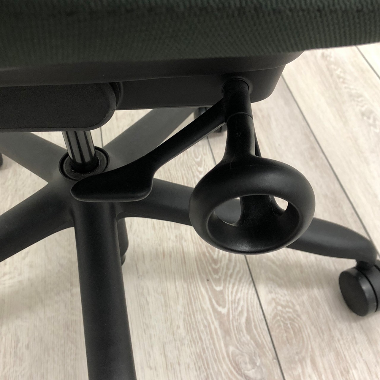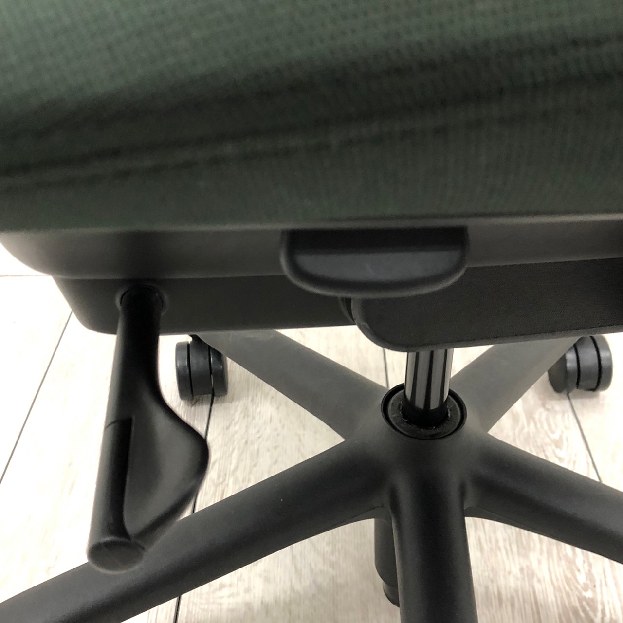 - 座ったまま、レバー操作一つで、簡単に座面を前傾できます。前傾姿勢を取ることが多いデスクワーカーに最適です。