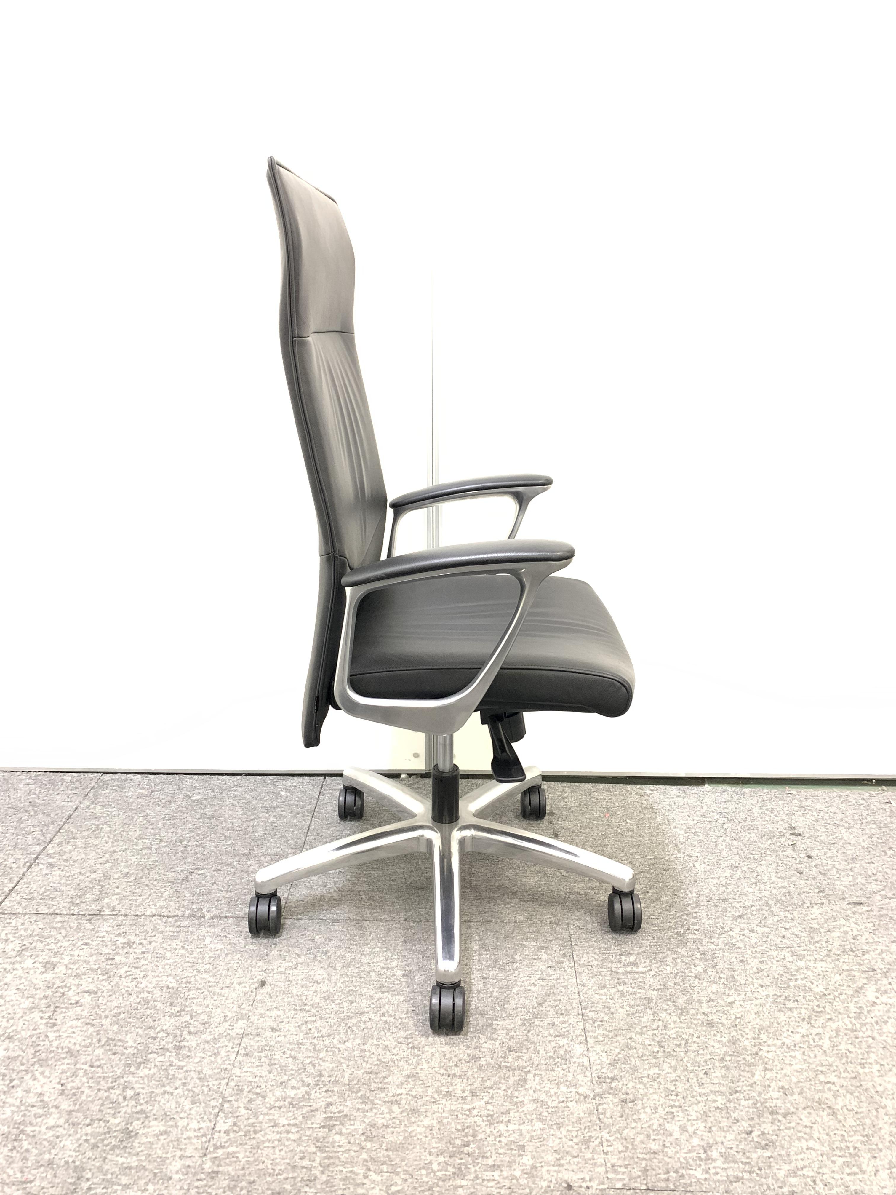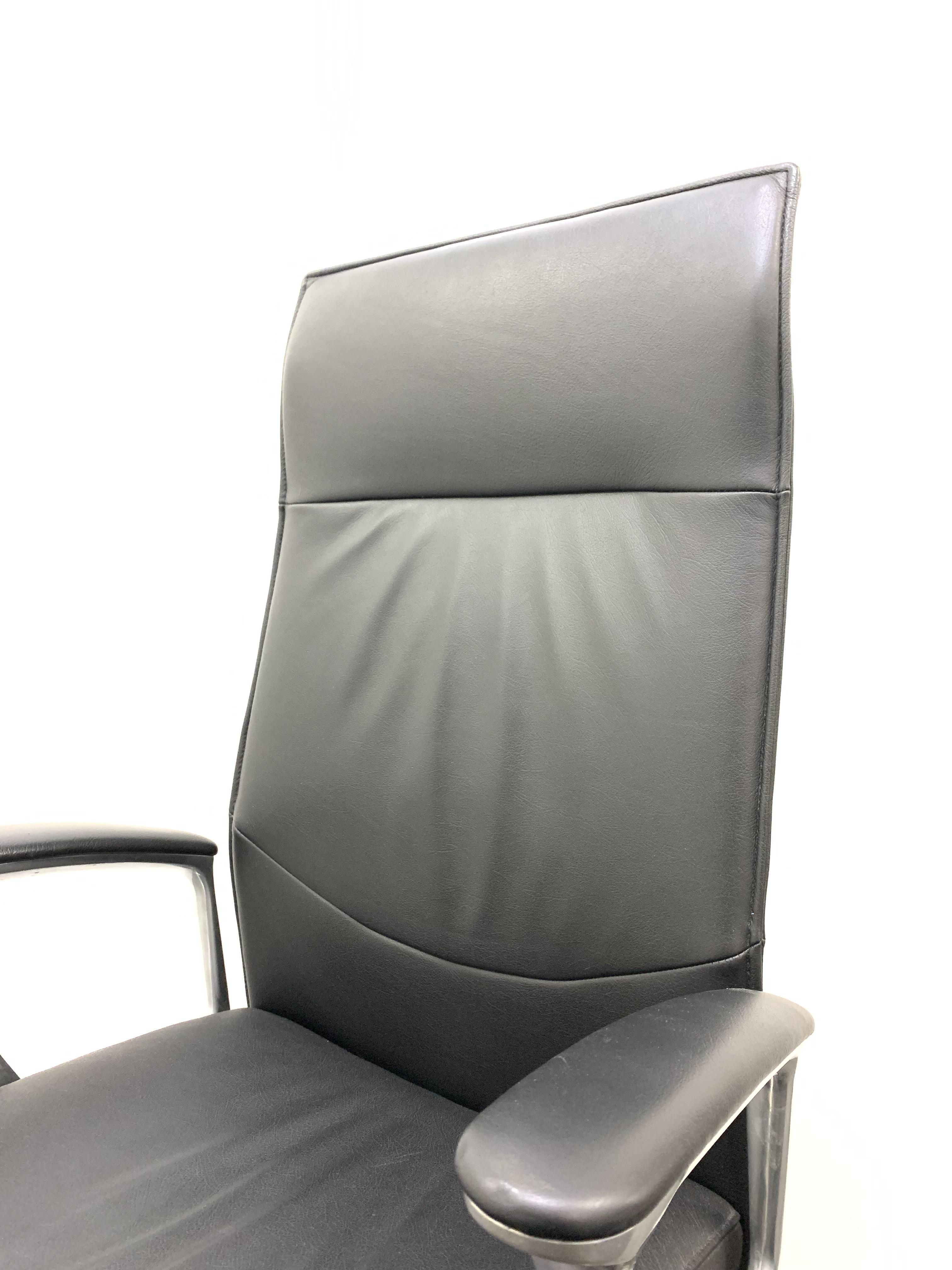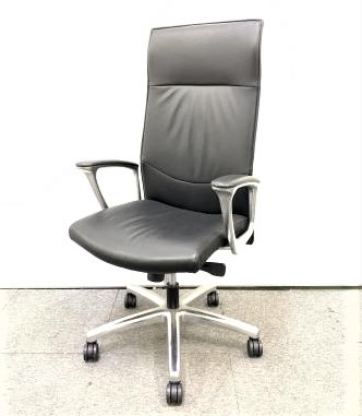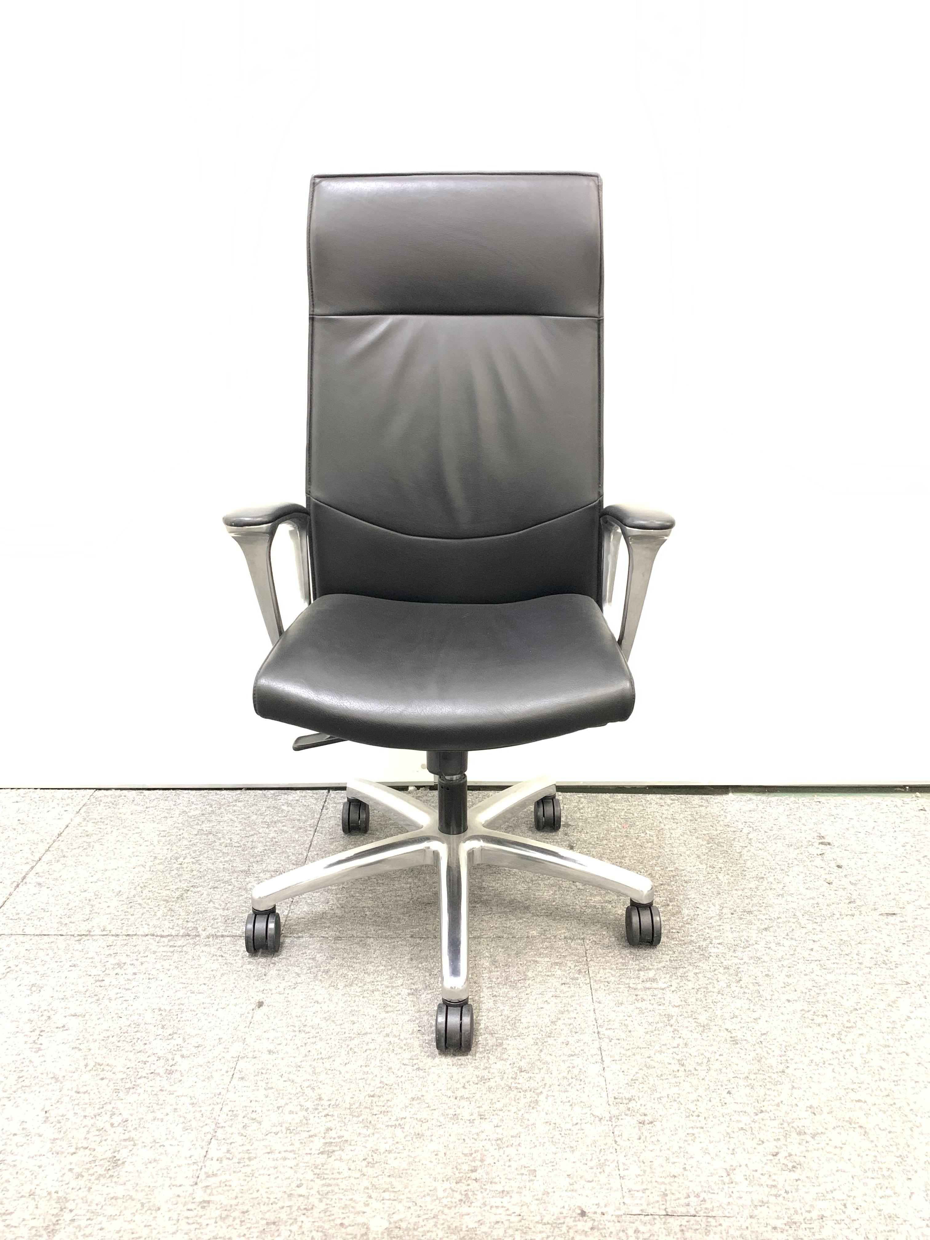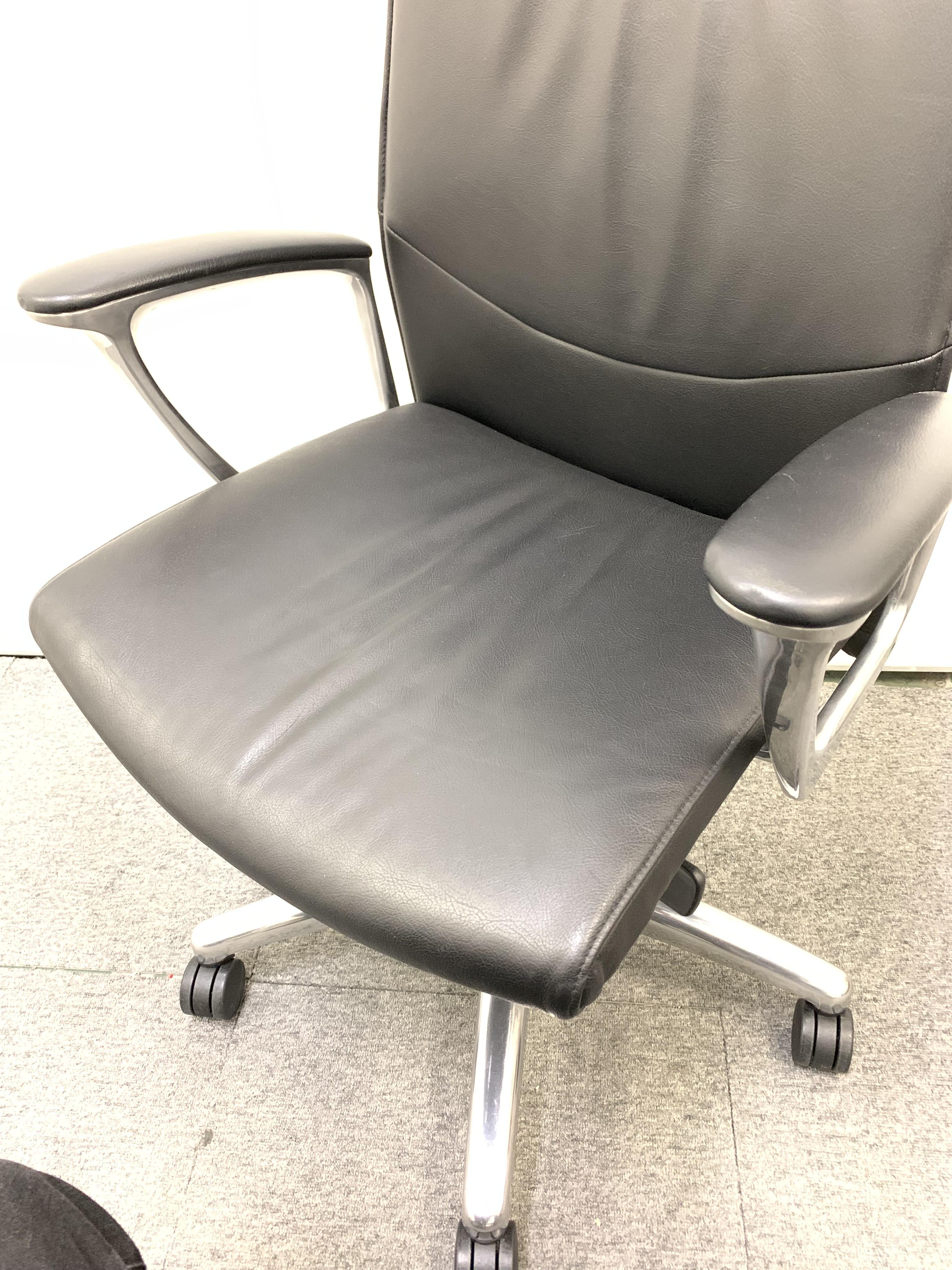 【大きな背もたれでリラックス!】■オカムラ製 エグゼクティブチェア ブラック ■上質な高級黒革張り仕様- 川崎店