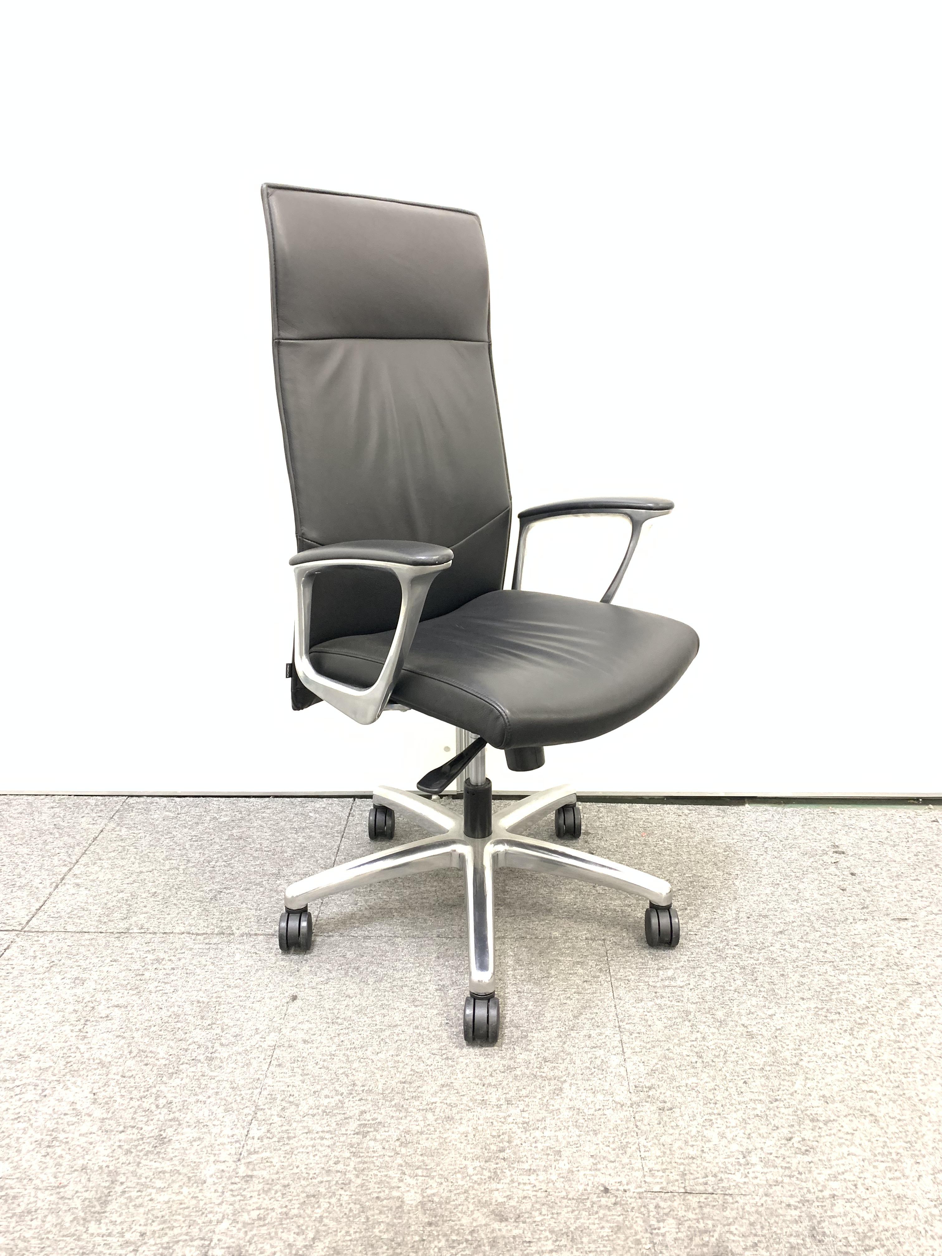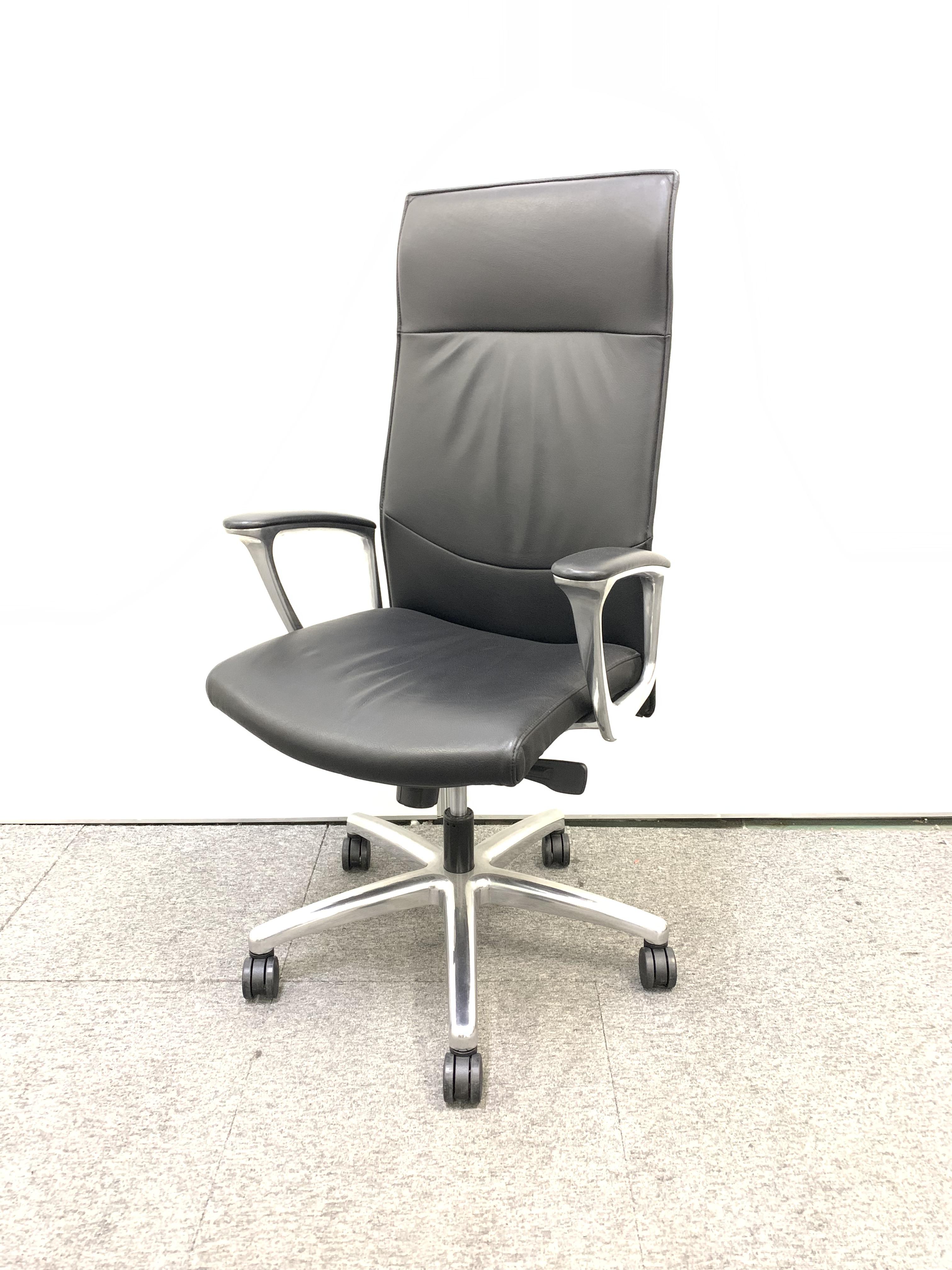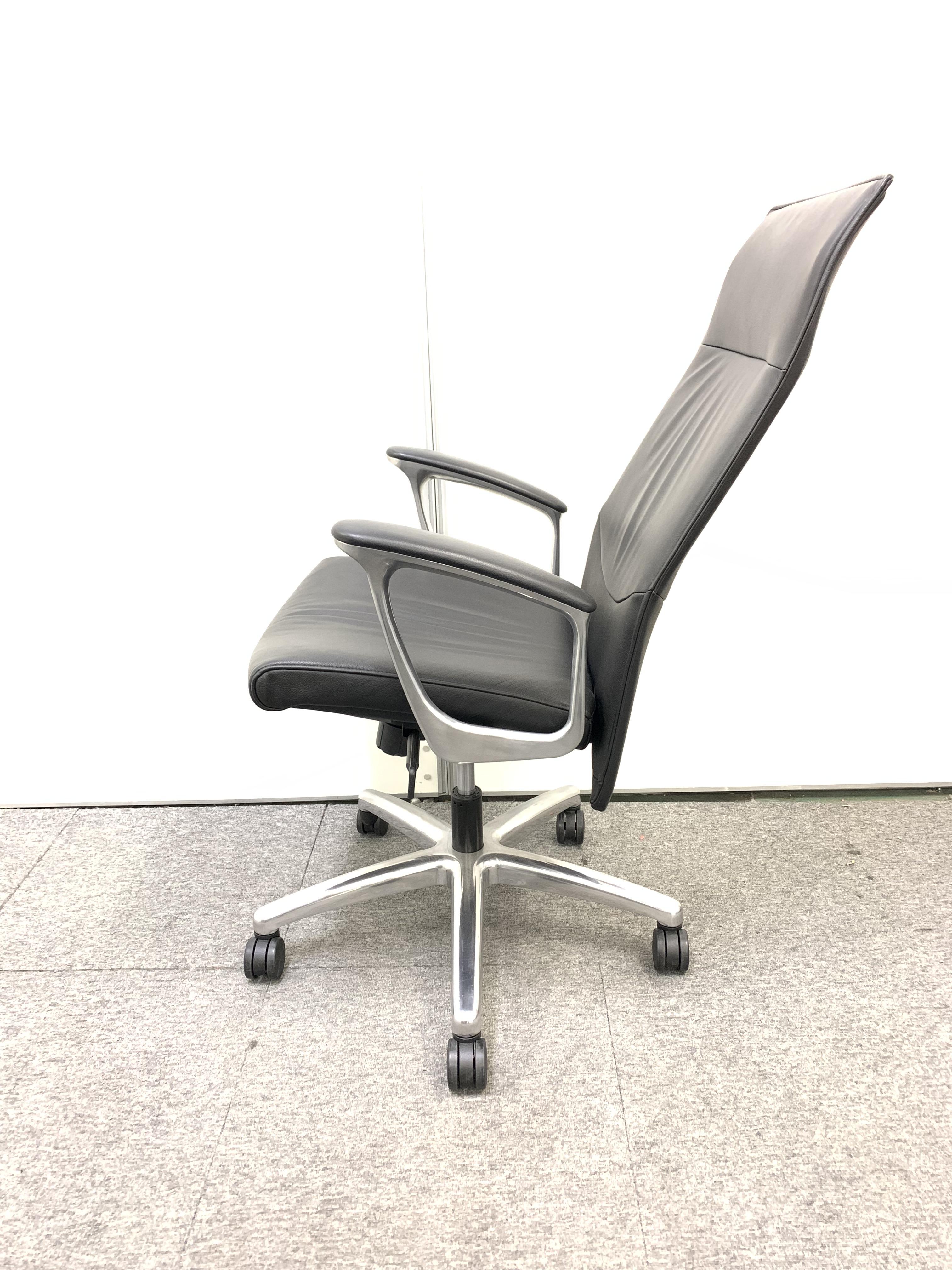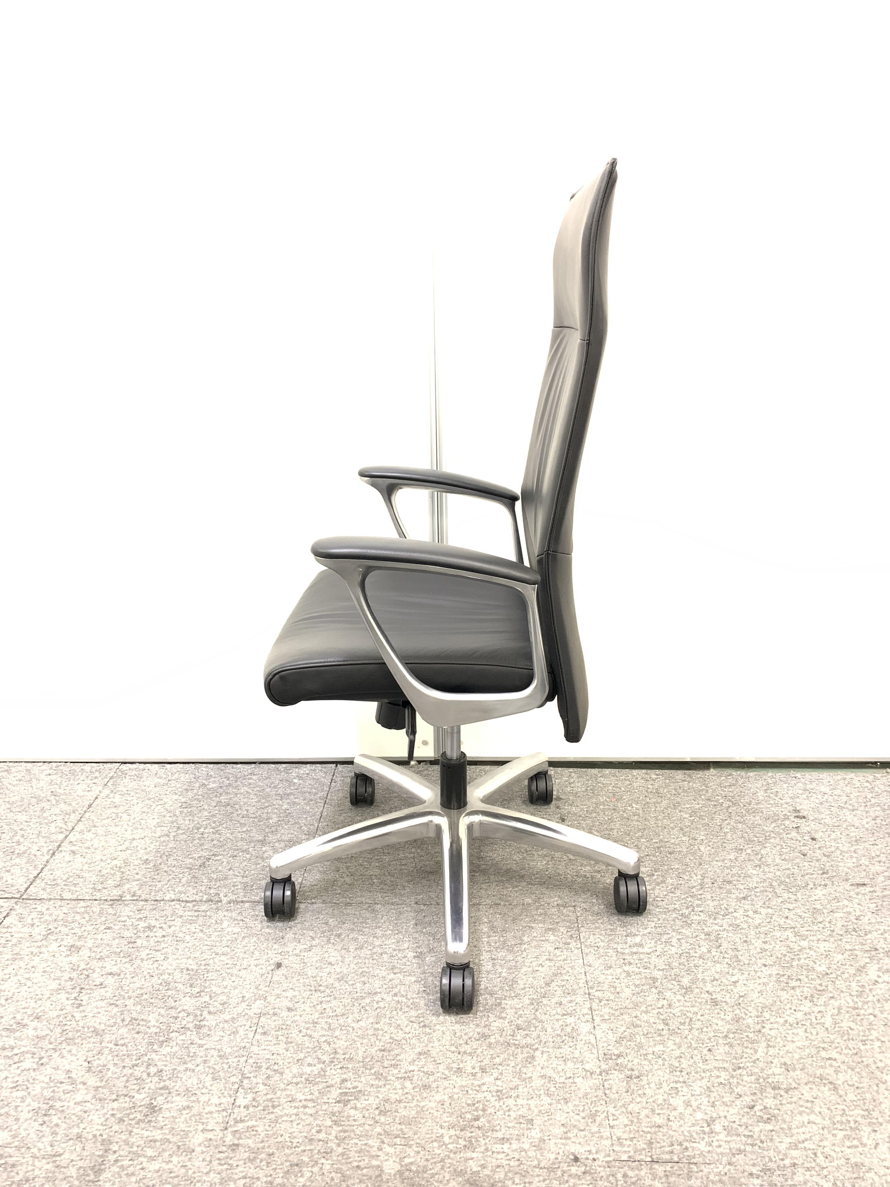 【大きな背もたれでリラックス!】■オカムラ製 エグゼクティブチェア ブラック ■上質な高級黒革張り仕様- 川崎店