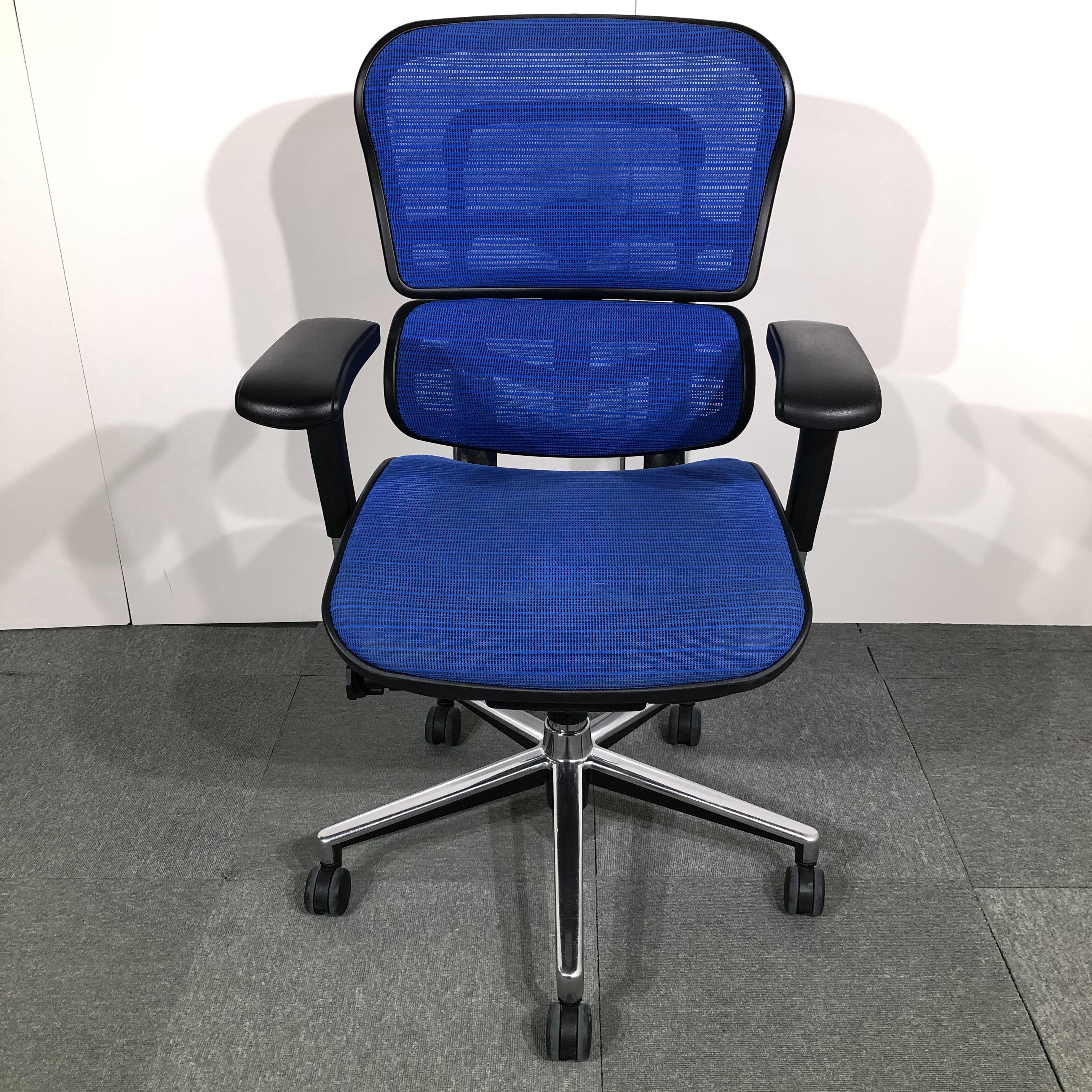 【関西倉庫在庫】エルゴヒューマンチェア|ベーシックタイプ|ブルー|座面・背面メッシュ|稼働肘- 新大阪店