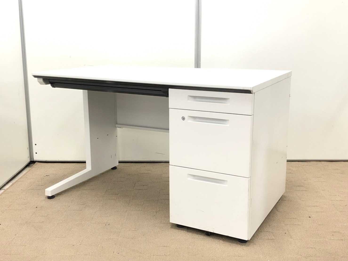 コクヨ iSシリーズ 片袖机 W1200の定番サイズ ホワイト 鍵付き シリンダー錠【愛知・名古屋・豊田・静岡・浜松】