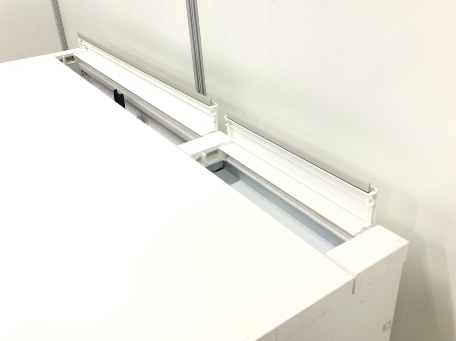 - OAタップや余長コードをコードダクトに収納できます。開閉式の配線カバーで、配線作業が簡単です。
