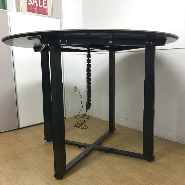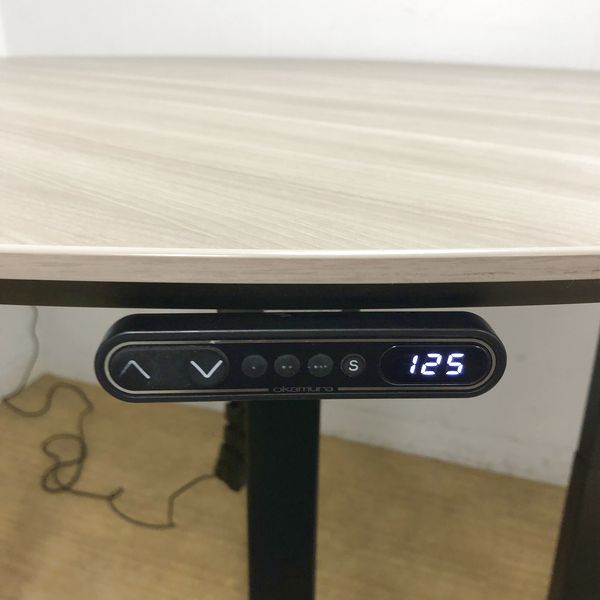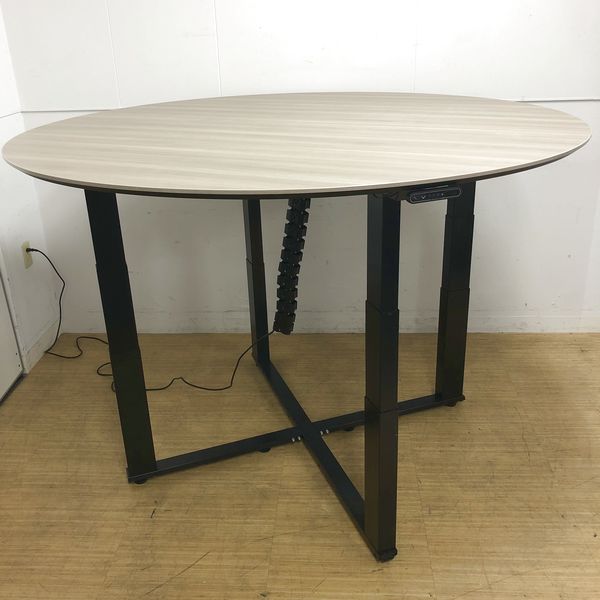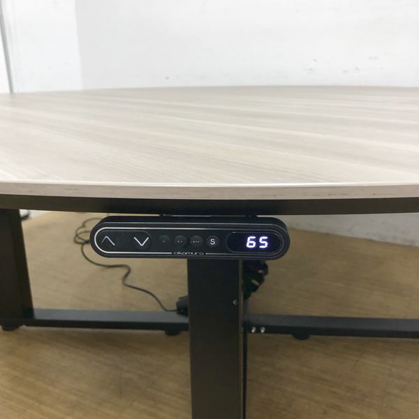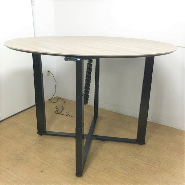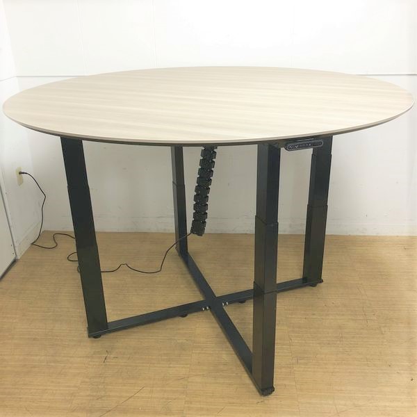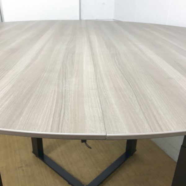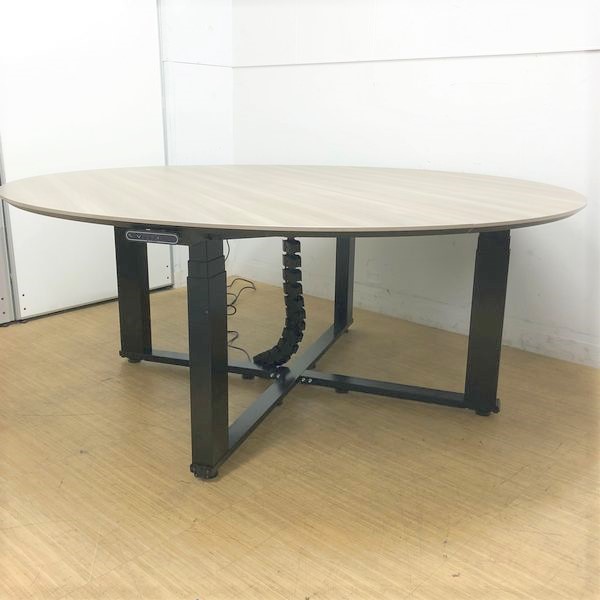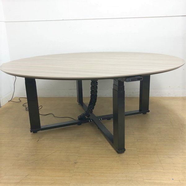 今どきのミーティングスタイル 大きなサークルテーブル 上下昇降 おしゃれな木目 オカムラ スイフト プライズウッドミディアム- 名古屋千種店