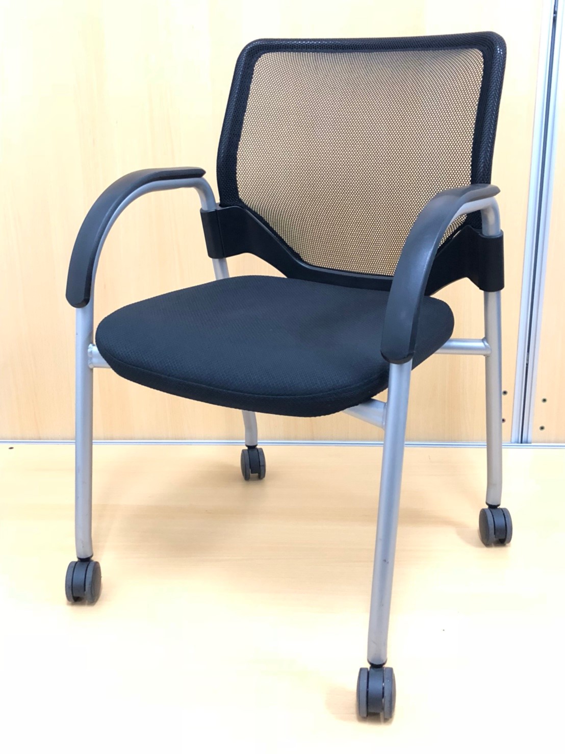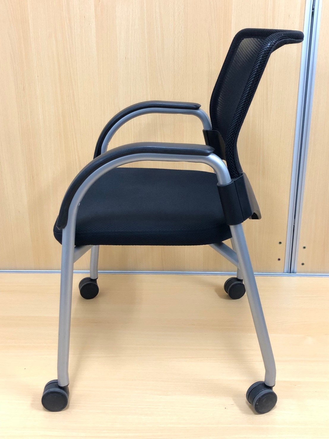 【リラックスできる肘付タイプ!】■オカムラ製 エアリシリーズ ミーティングチェア 肘付 ブラック キャスター付- 川崎店