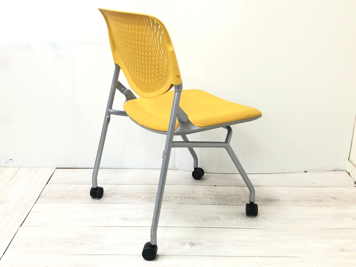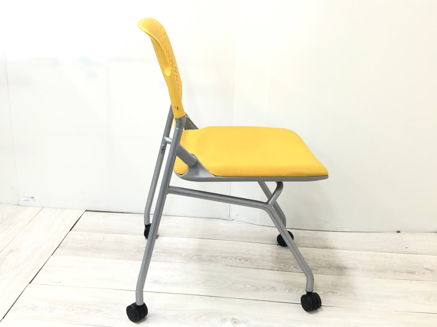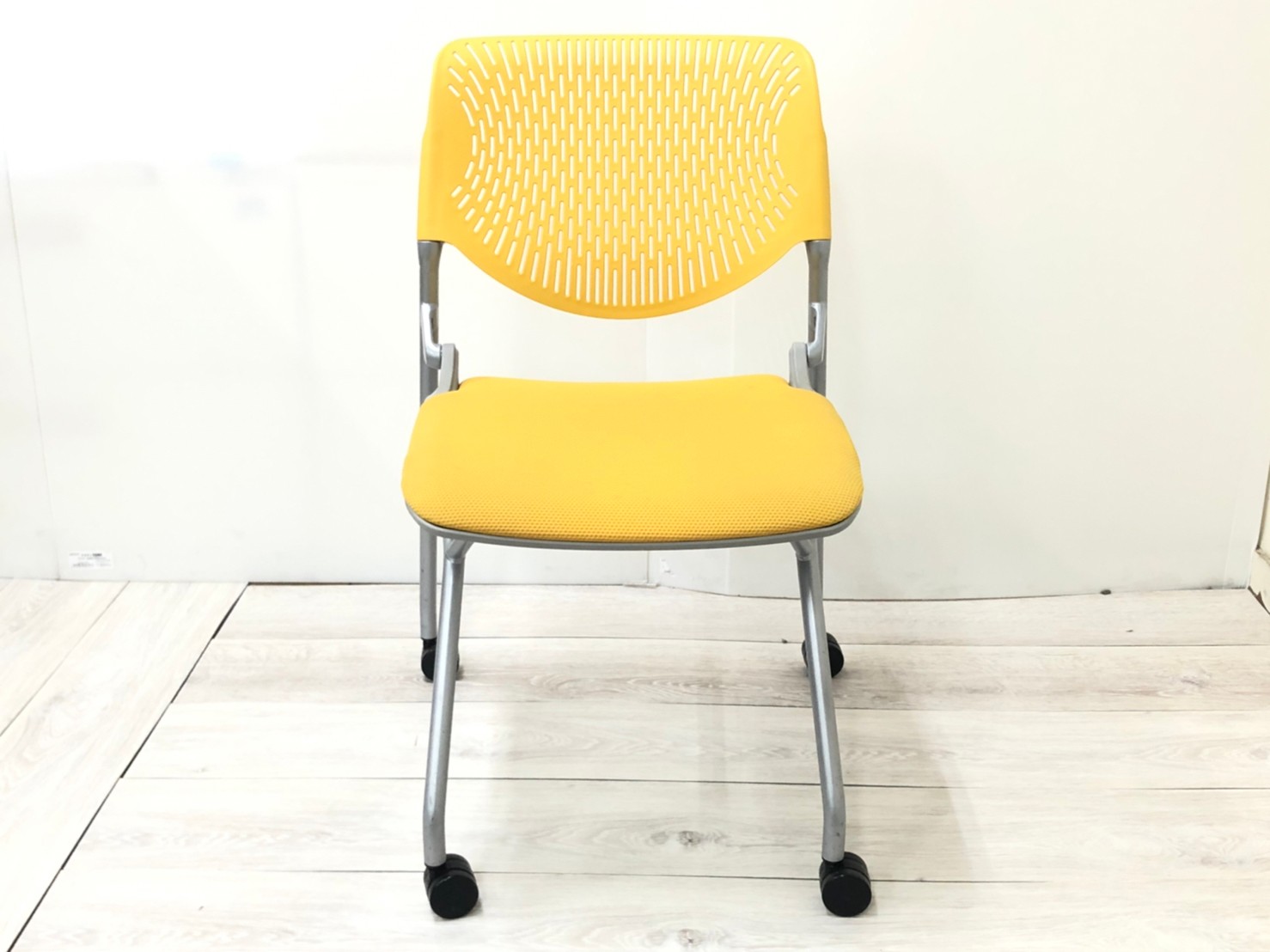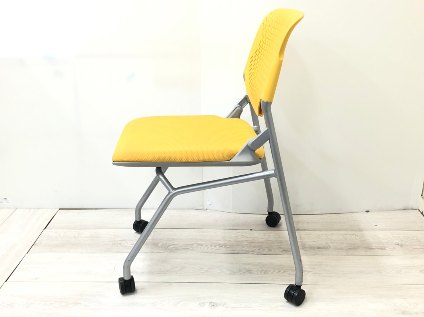【一風変わったカラーリングのミーティングチェア!】※ネスティングタイプです! ■オカムラ/ルナ/イエロー- 池袋店