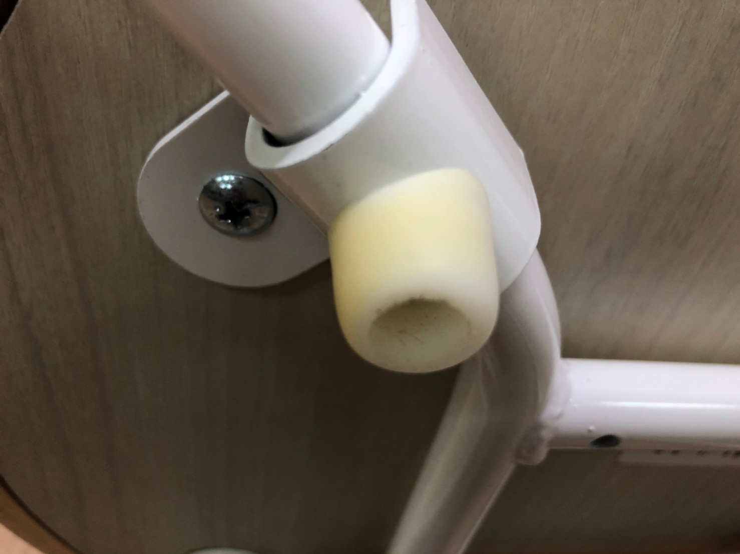 - かなり強い濃い黄ばみ・変色が商品全体にある。(例、座面・背もたれ、脚部等にある。)