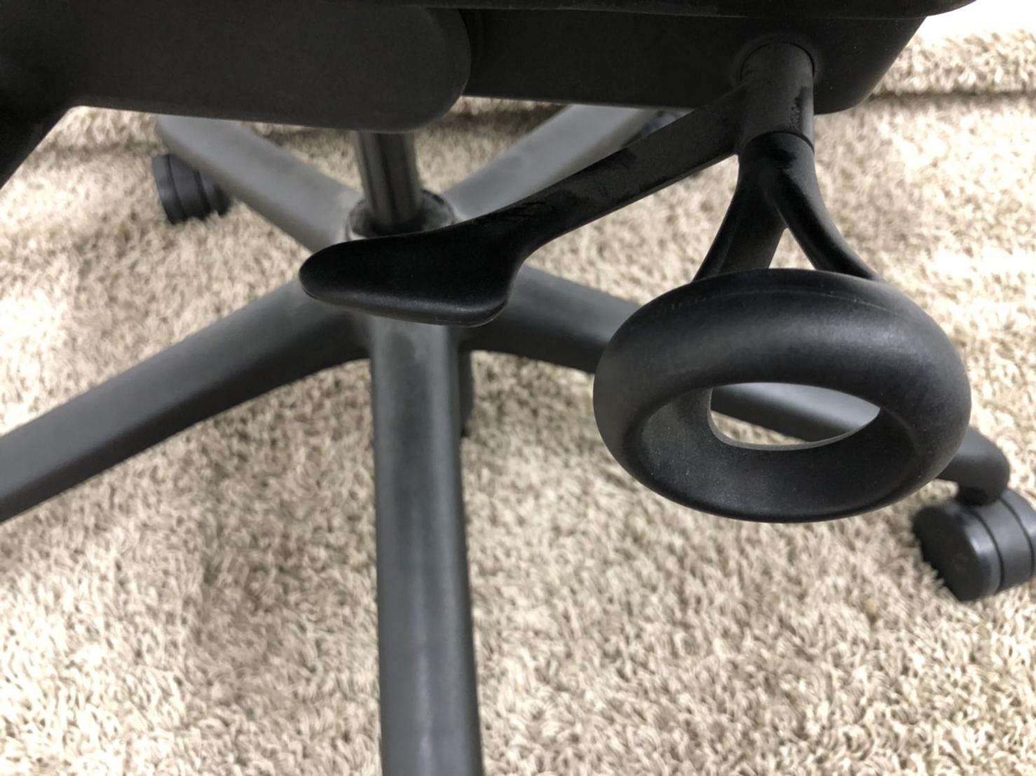 - 座ったまま、レバー操作一つで、簡単に座面を前傾できます。前傾姿勢を取ることが多いデスクワーカーに最適です。