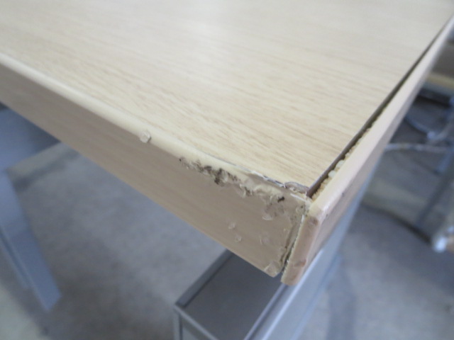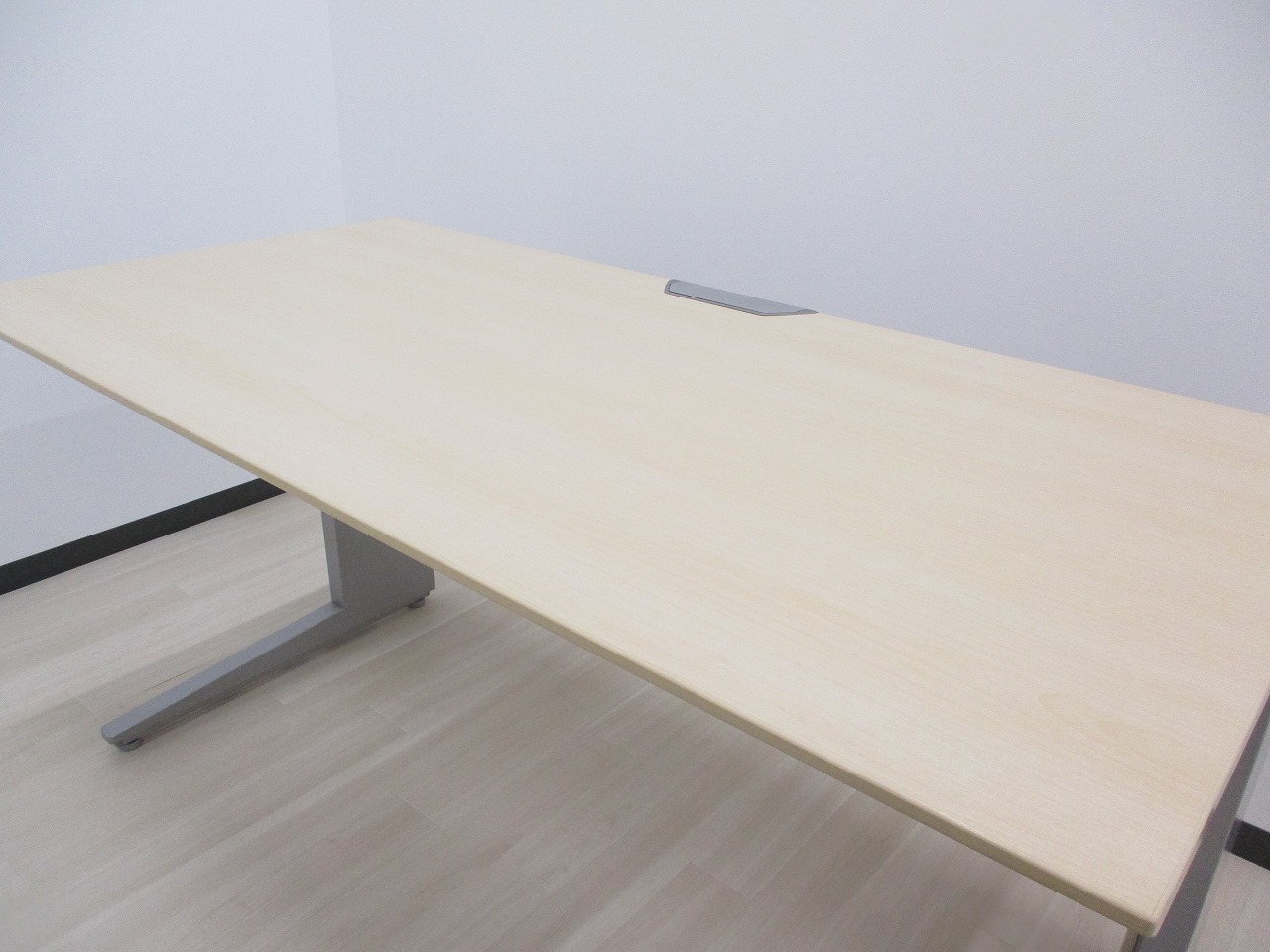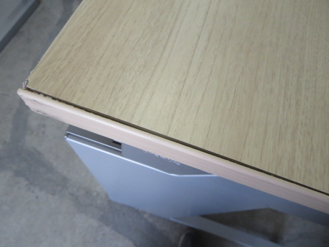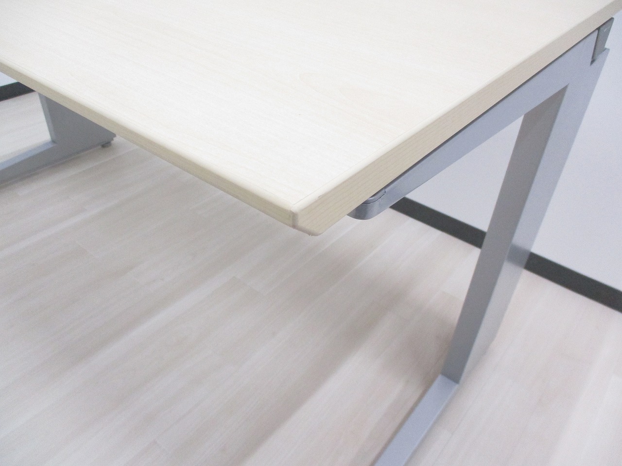 【訳あり特価品】※天板ゴリゴリに削れてます・・・■オカムラ製 平デスク W1400mm ナチュラル天板 シルバー脚- 川崎店