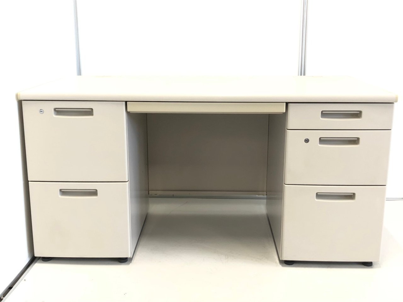 ★コクヨ製 BS ニューグレー W1400xD700xH700サイズ シリンダー スタンダードなデザインで高品質! 収納力を備えたスチールデスク! 上長様用の席にもおススメです! W1400両袖机!!