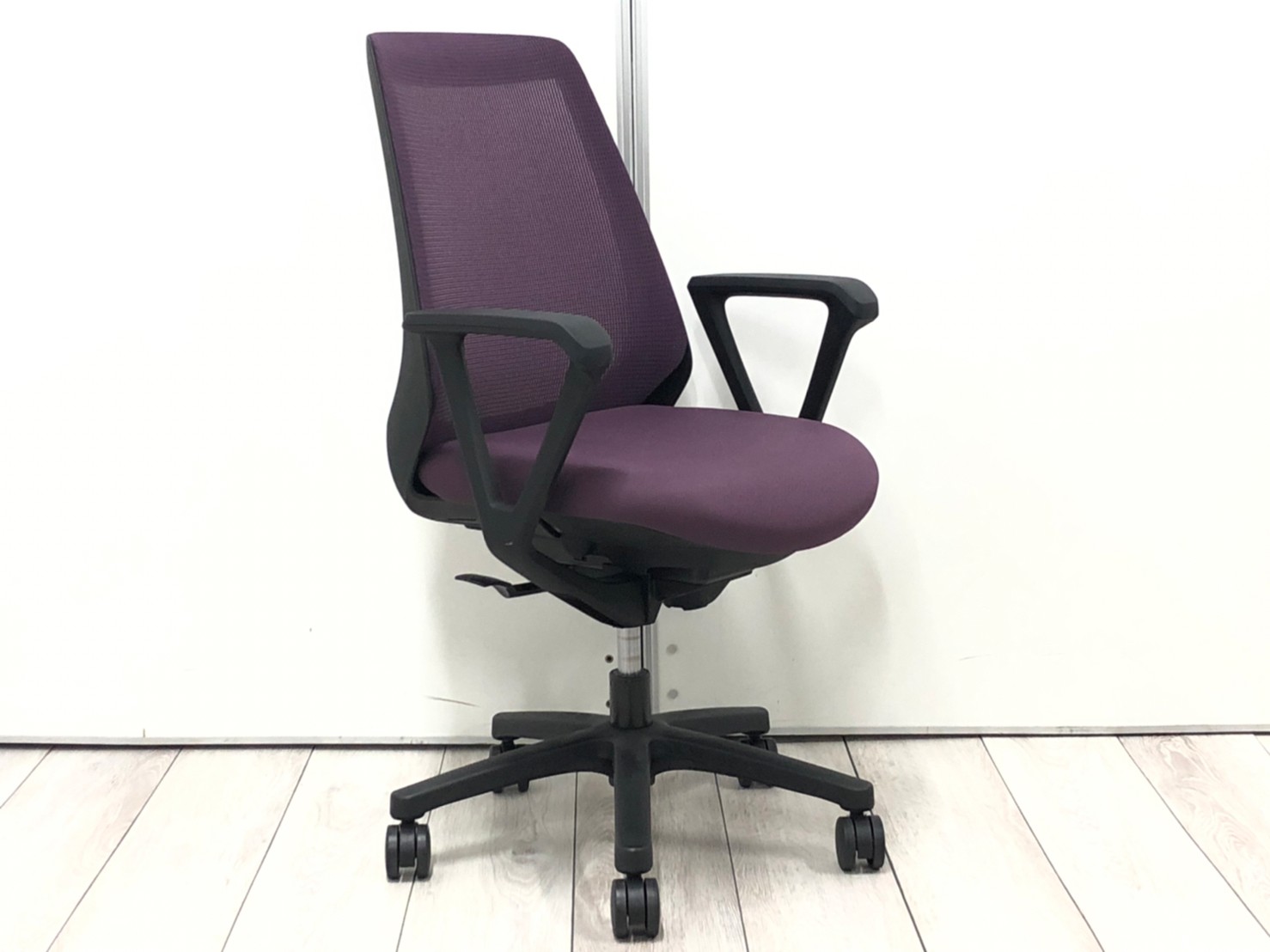 【在庫入替セール!】■イトーキ(ITOKI)製 ノナ(nona)チェア ハイバック 肘付き ■サークル肘 ■背面メッシュ ■プラムパープル × ブラックシェル【T12】