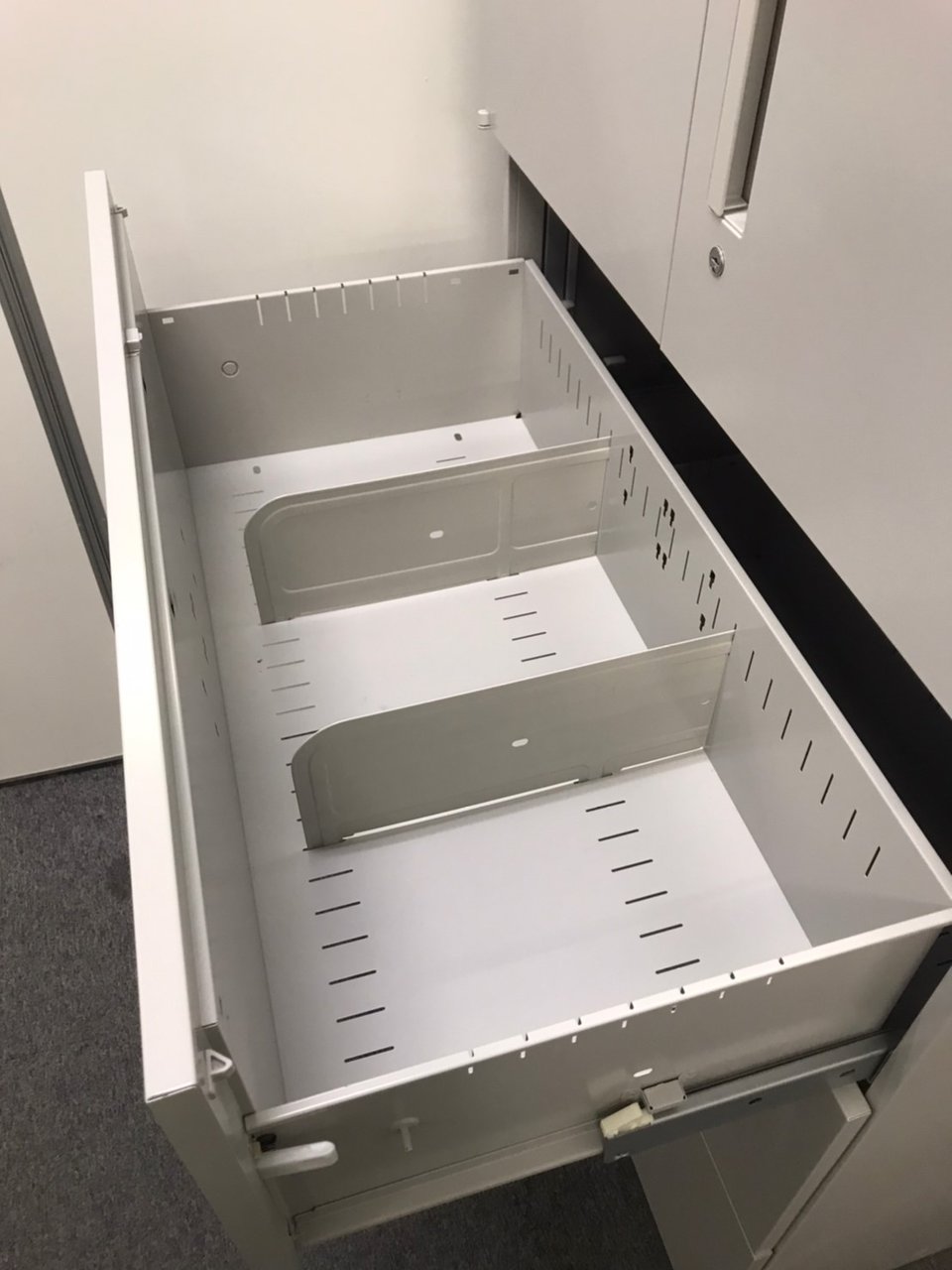 - 一部不具合ありそ引出の開閉不可、施錠不可、棚板無しといったの書庫の本来の効用を果たすための機能以外の一部が使用不可(例、扉、引出の開閉がしづらいなどがある。 )