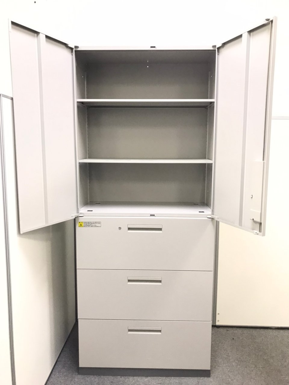 【限定1セット】書庫セット(上置:両開き・下置:3段ラテラル)|内田洋行(UCHIDA)|HSシリーズ|キングファイルの収納も!- 神戸・三宮店