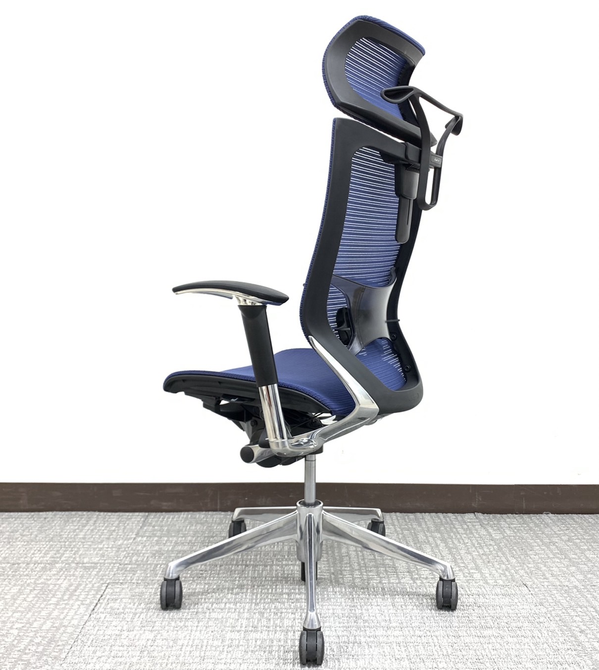 【1脚限定】海最高!オーシャンブルーバロン(Baron)チェアエキストラハイバック付き座面メッシュ&可動肘&ポリッシュフレーム仕様◆オカムラ製【RP】- 埼玉本店