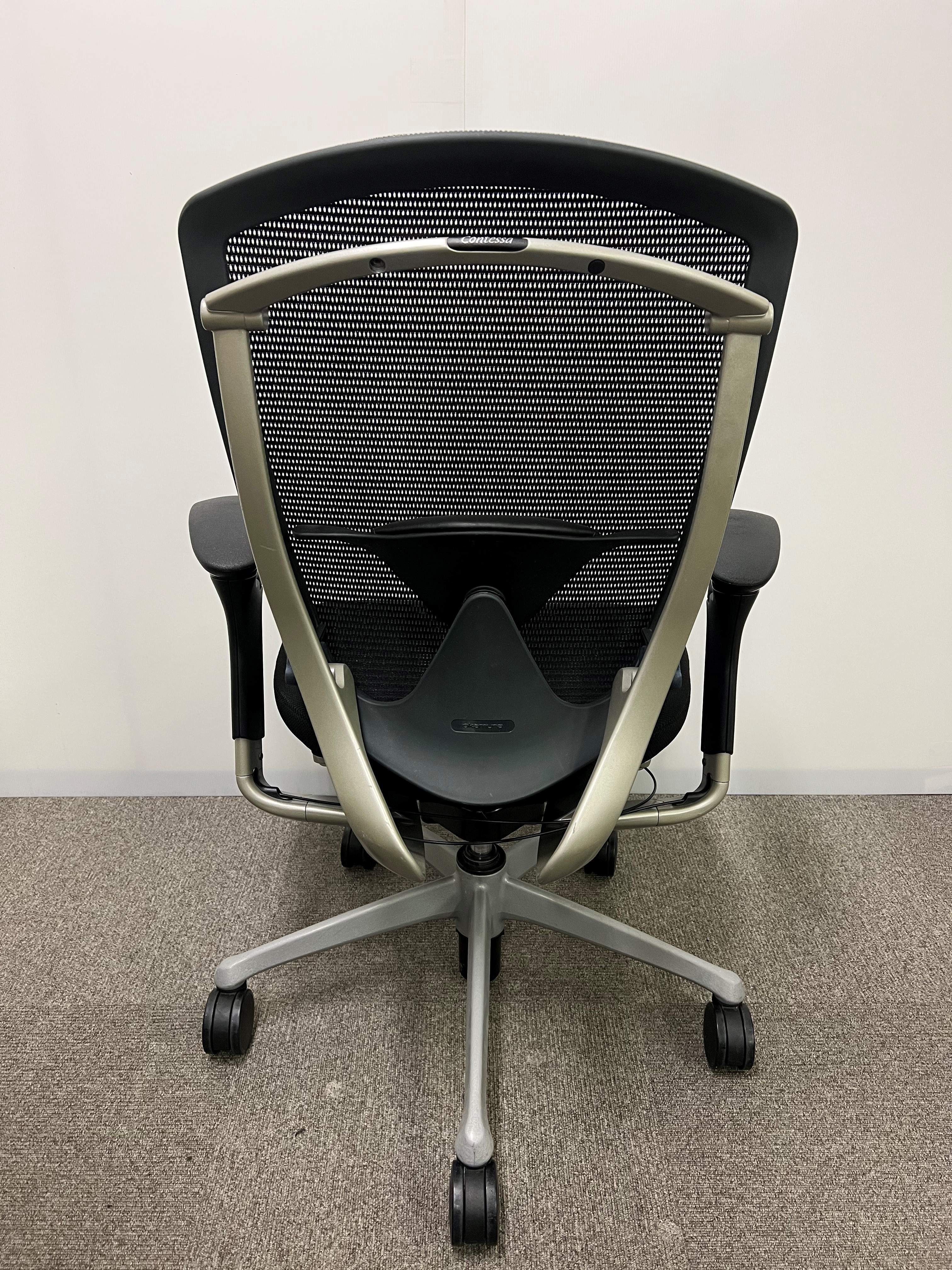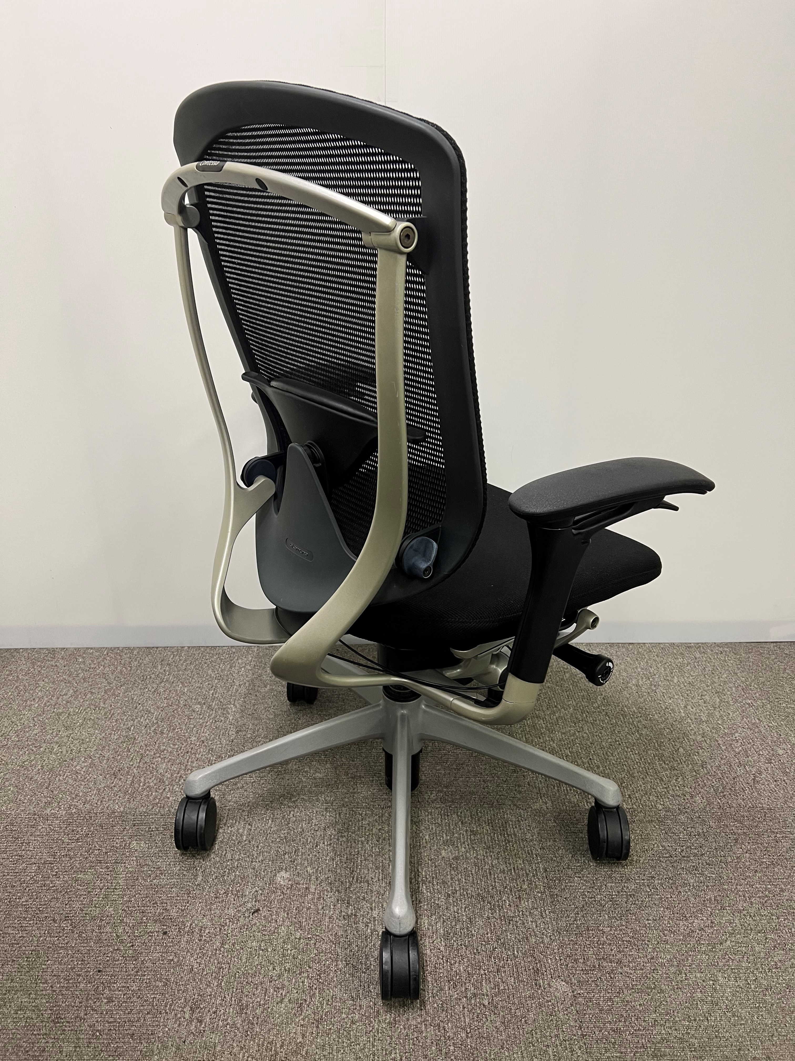 【世界で認められた革新的タスクチェア!人間工学に基づいた快適な座り心地を実現!】■オカムラ(okamura)製 コンテッサ(Contessa)チェア ハイバック 肘付き 背面メッシュ ■可動肘・ランバーサポート付 ■ブラック ※肘スレ有