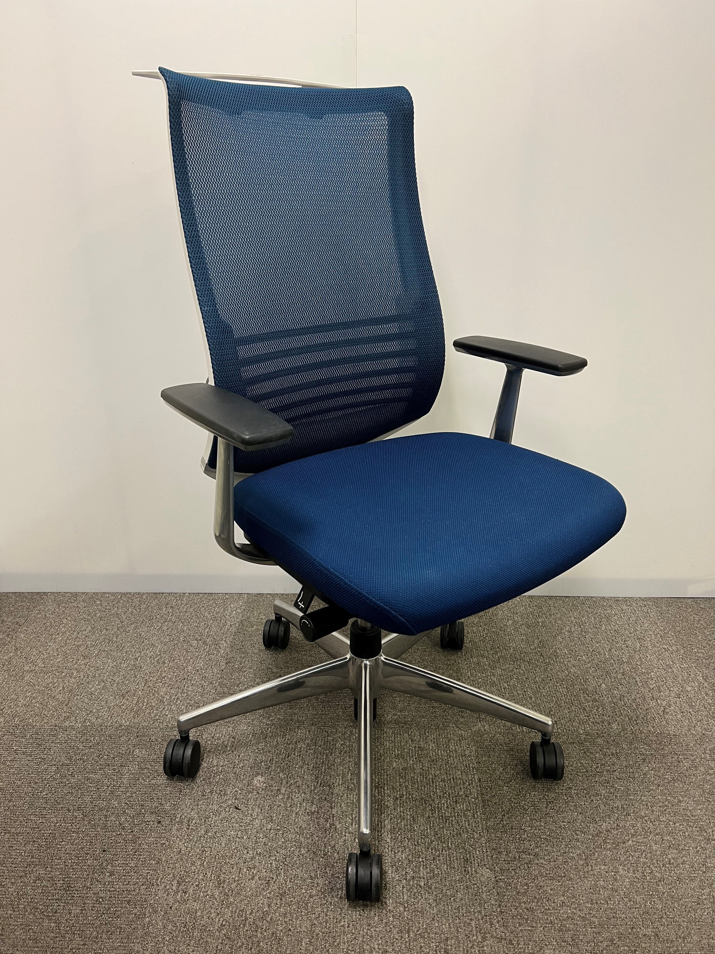 【緊急入荷!!】腰に優しいチェア入荷!中古 高級チェア オフィスチェア メッシュ ブルー おしゃれ テレワーク 前傾姿勢 前傾チルト ハイバック ランバーサポート
