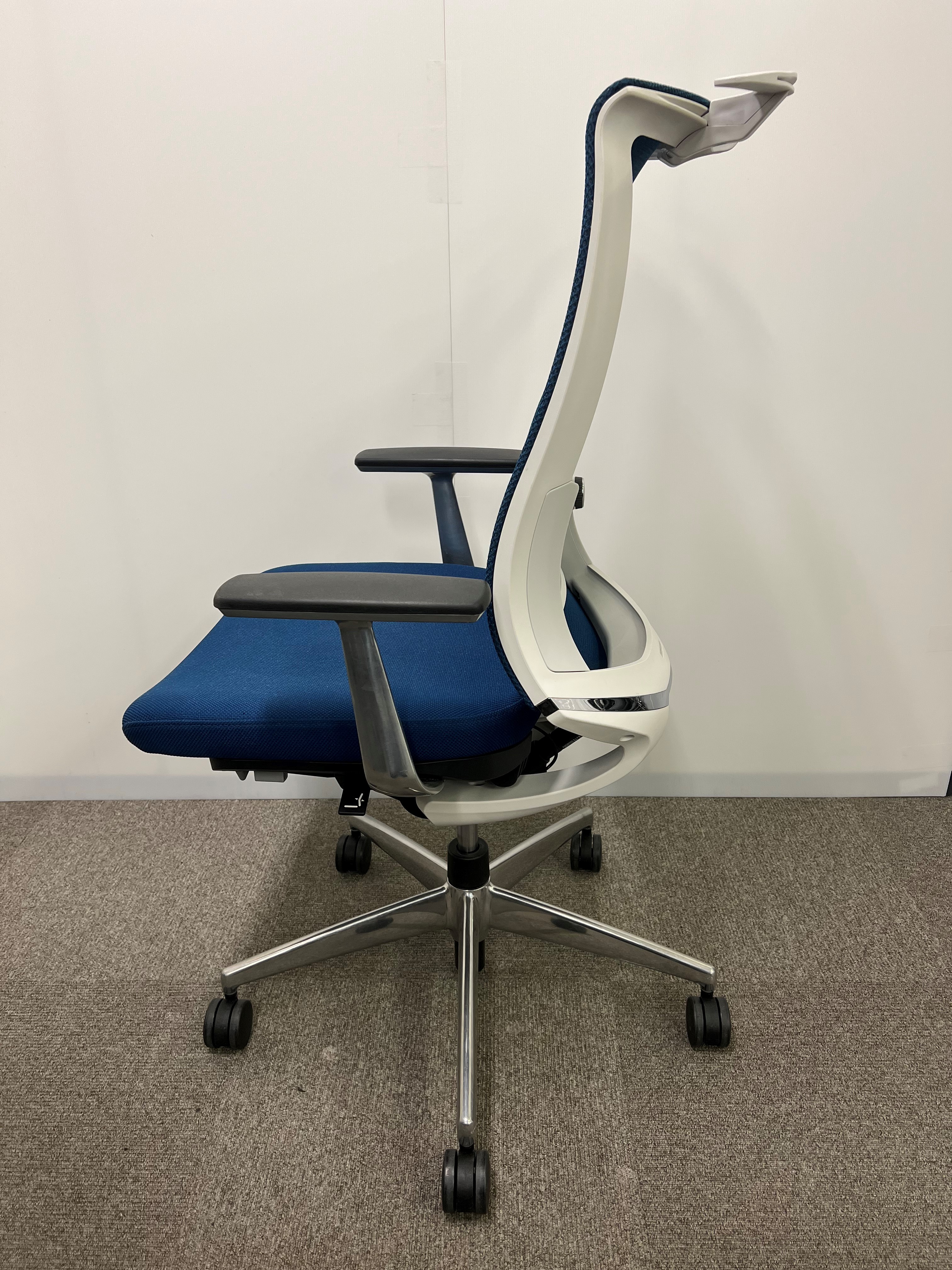 【前傾から後傾まで様々な姿勢をサポート!ワンランク上の座り心地!】■コクヨ(KOKUYO)製 ベゼル(Bezel)チェア 肘付き ハイバック 背面メッシュ ■可動肘 ■プルシアンブルー×ホワイトシェル ■ハンガー付