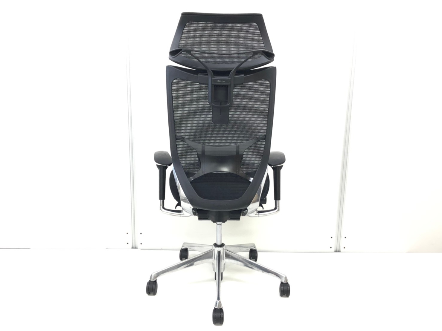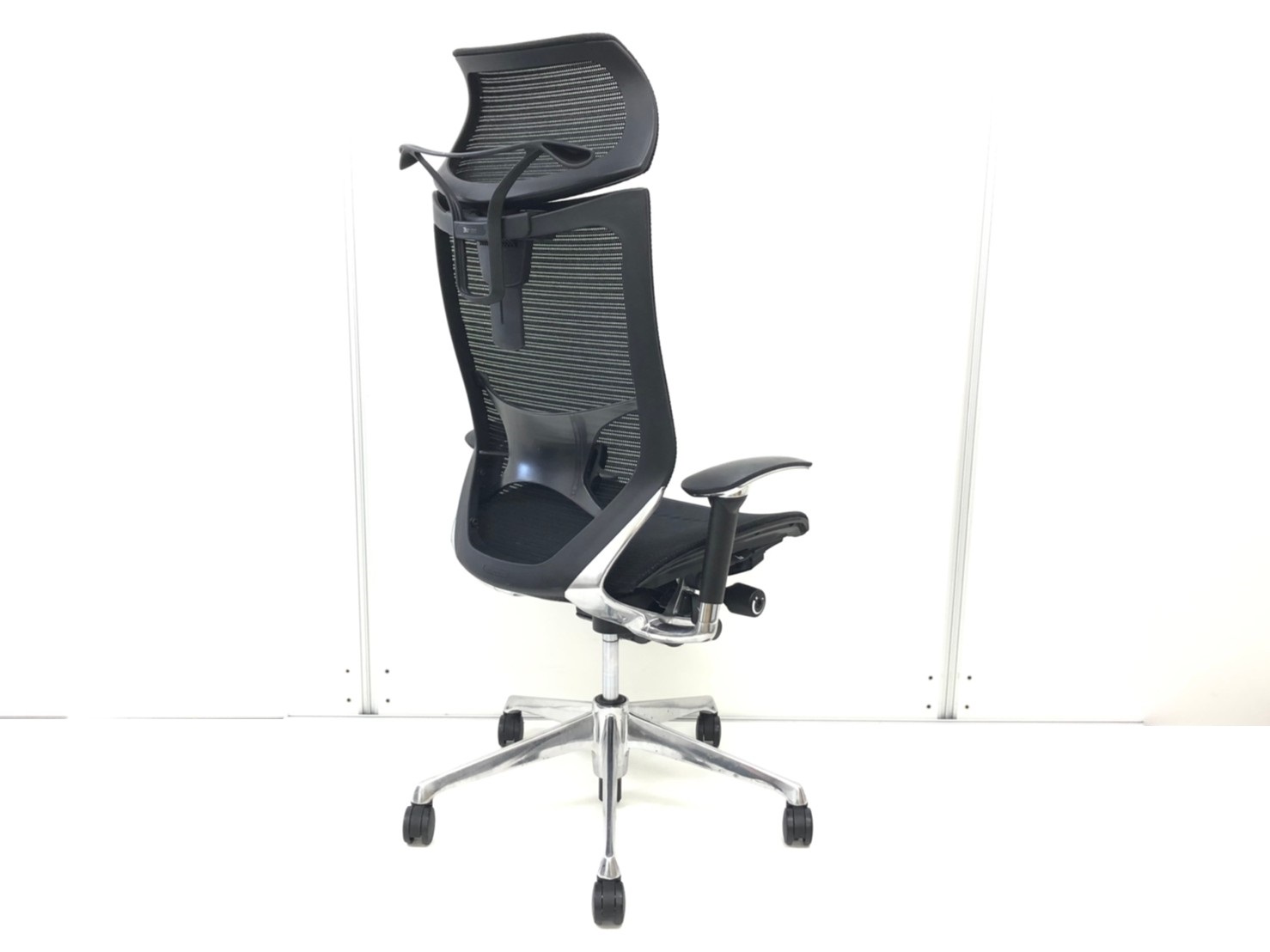 ヘッドレスト付きのエクストラハイバック! 座面メッシュ仕様です! オカムラ バロン ブラック- 足立・葛飾店