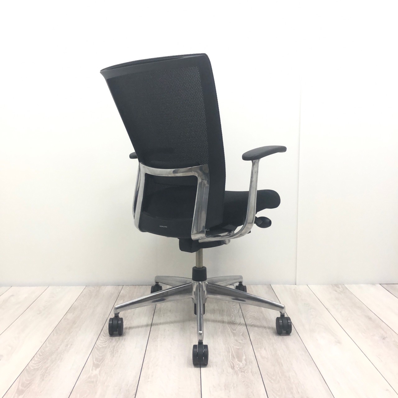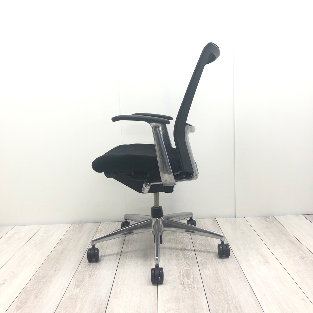 背もたれのメッシュ素材と、アルミフレームの組み合わせで高級感のあるチェアになっております。