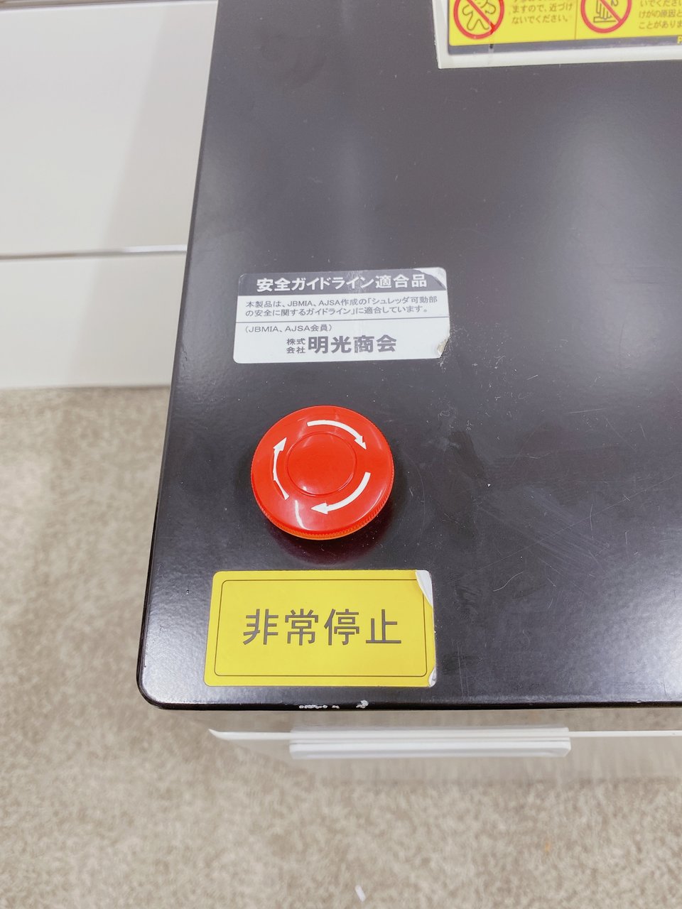 スイッチを押すと緊急停止し、スイッチを右に回転させると元に戻り、再スタートボタンを押すことで再度使用できます。