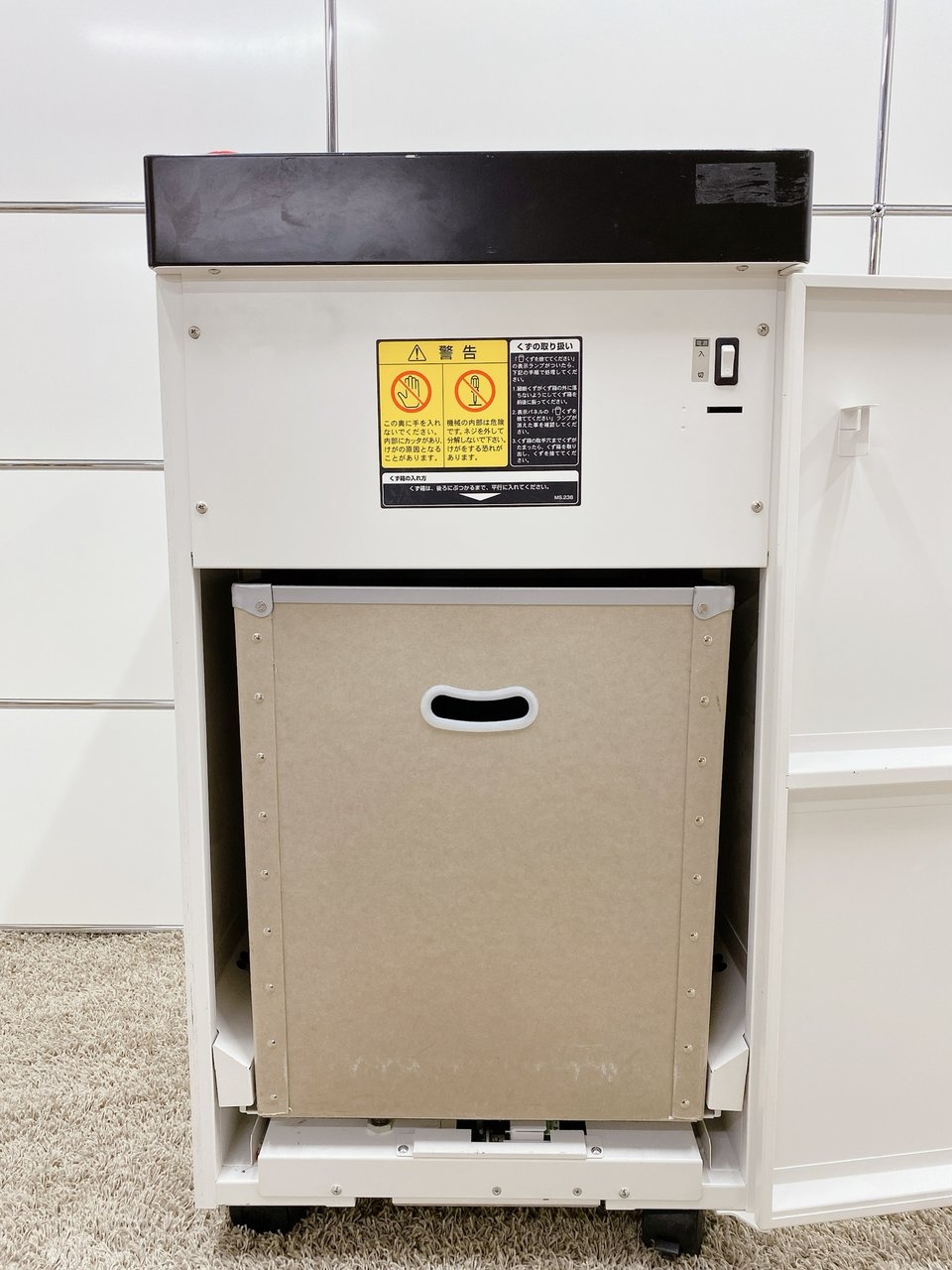 くず箱に振動を与えることで、片寄った細断くずを均等にならします。