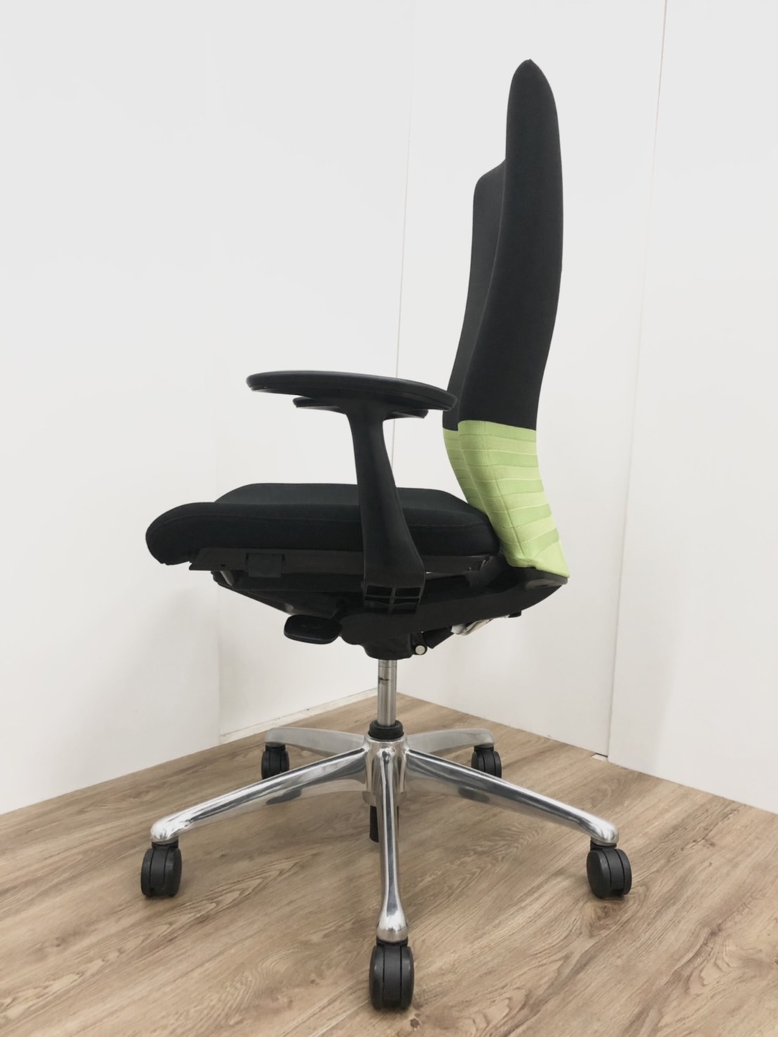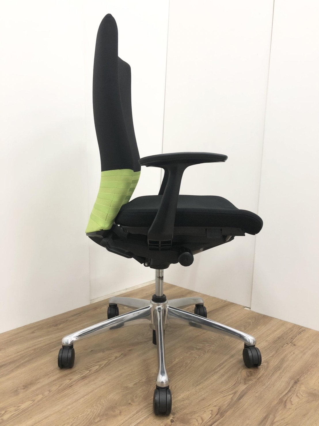 グリーンのアクセントが光るハイバックチェア!大人気シリーズです!【Feego】【シームレス】【固定肘】- つくば店