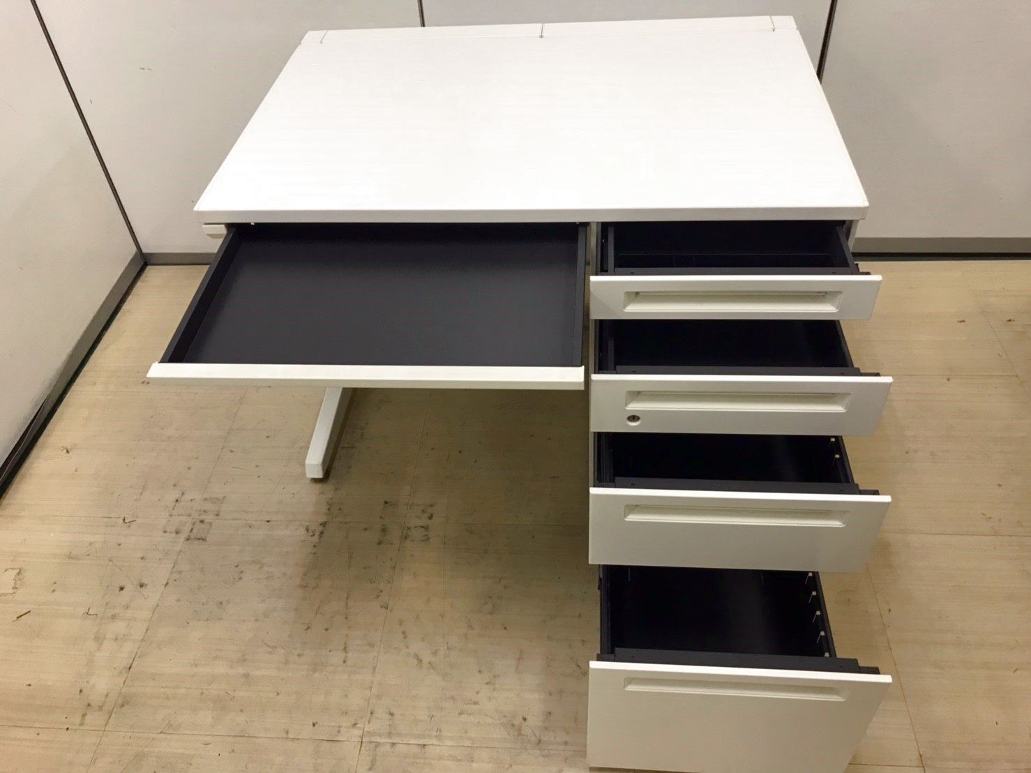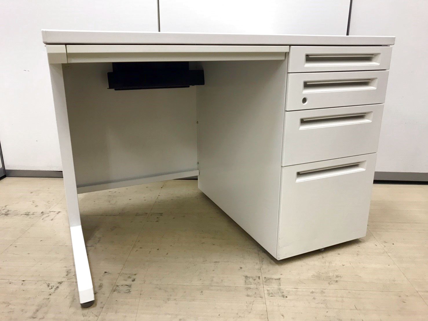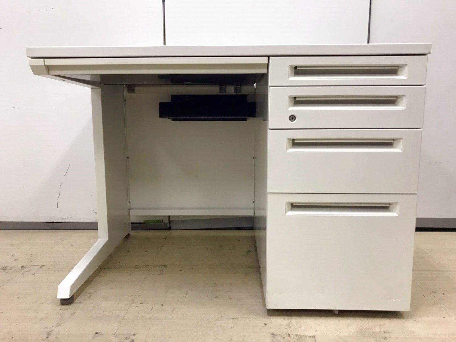 【T11】【商品入替のため、残り6台限り】オカムラ製 アドバンシシリーズ ホワイトカラー 4段収納で整理も完璧! コンパクトで清潔感のあるオフィス W1000片袖机!!