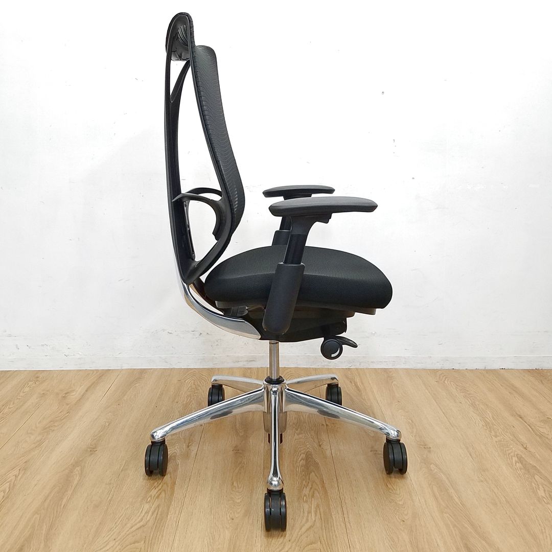 【前傾チルト付・流れるような美しいフォルムの最高級メッシュチェア!】■オカムラ(okamura)製 サブリナ(Sabrina) 肘付き エクストラハイバックチェア 背面メッシュ ■可動肘・ヘッドレスト・ハンガー付き ■ブラック【オフィスにもご自宅用にも人気の一品!】