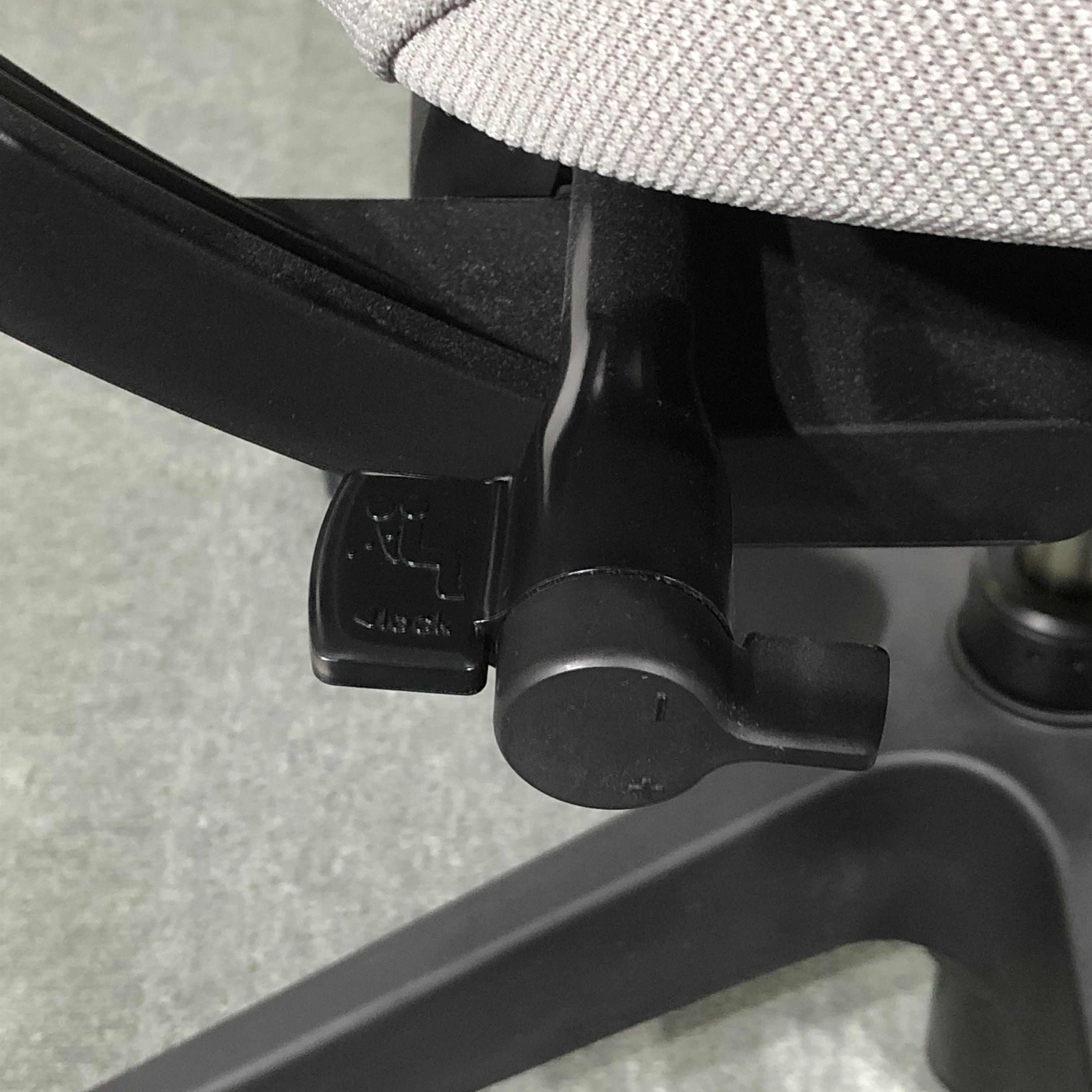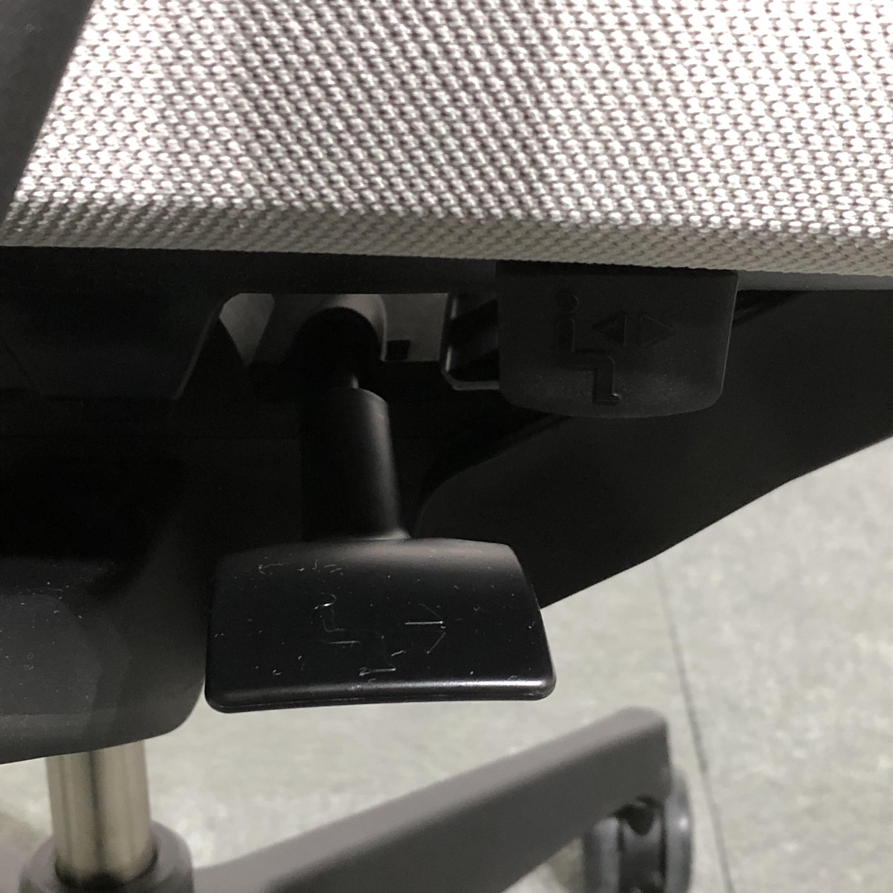 - 座面下のレバー操作により、座面を50mmのストローク(16.7mmピッチ)で好みの位置に調節できます。体格や作業姿勢に合わせたポジション設定が行えます。