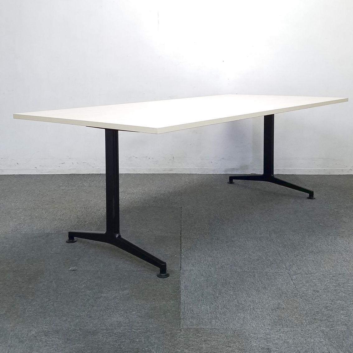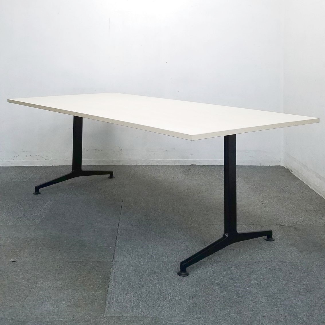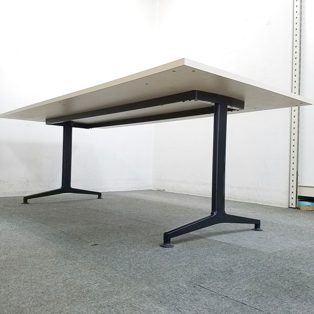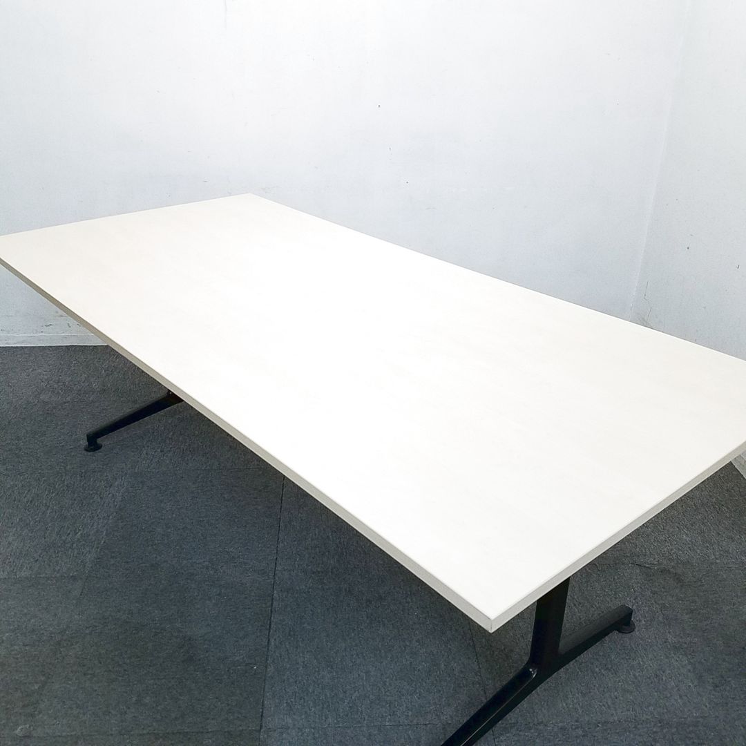 【3台入荷】十人十色の空間を彩る人気のテーブル入荷!中古 テーブル オフィス 会議 打ち合わせ ナチュラル ブラック脚 飛沫防止 W2100 D1000 四つ脚 T字脚- 大阪・堺店