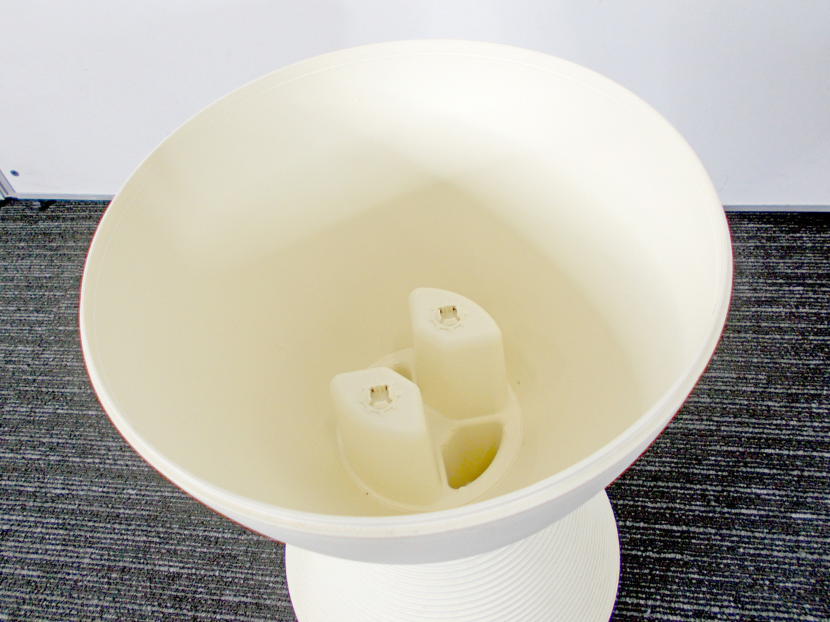 - かなり強い濃い黄ばみ・変色が商品全体にある。(例、座面・背もたれ、脚部等にある。)