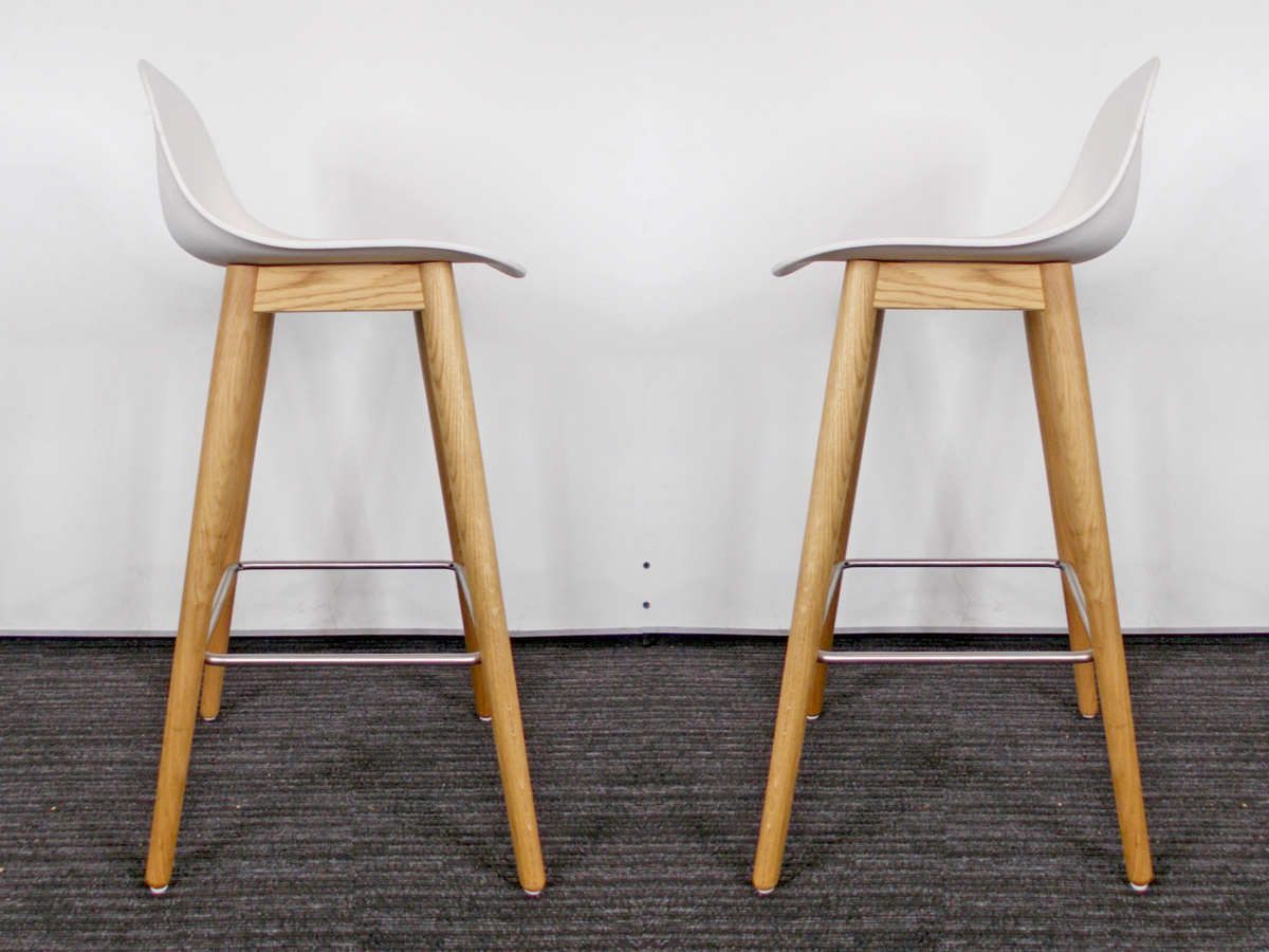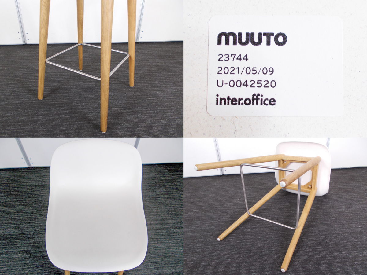 【2021年製】MUUTO/ムート ファイバーカウンタースツール バックレスト ウッドベース ホワイト インターオフィス- デザイナーズ家具センター