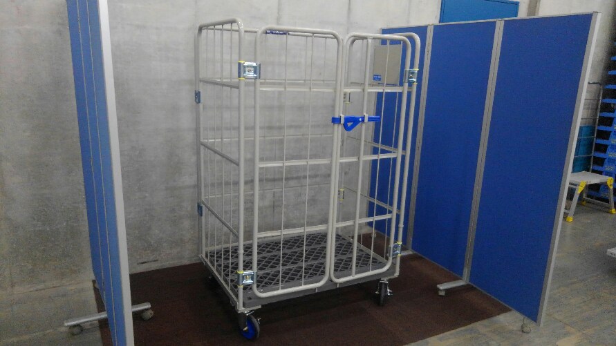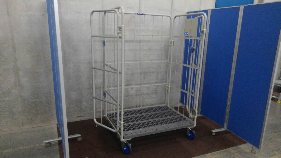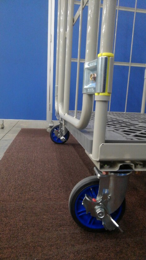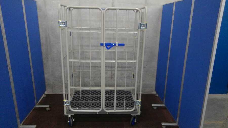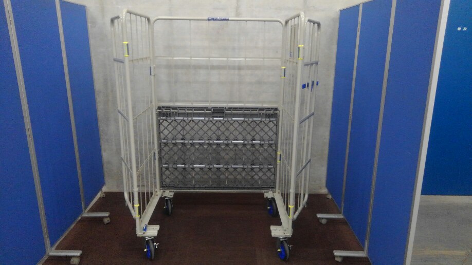 両開きタイプのカゴ台車が初入荷致しました! 前輪ストッパー付き!! 最大積載荷重:500kgまで ※マテハン本舗の中古商品は、千葉県柏市に在庫がございます。- マテハン本舗