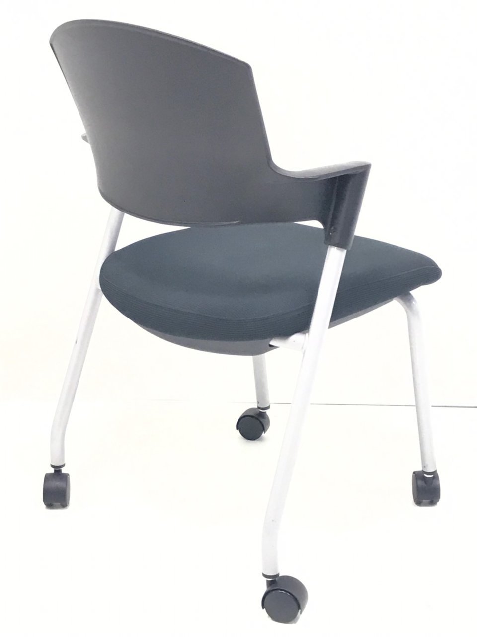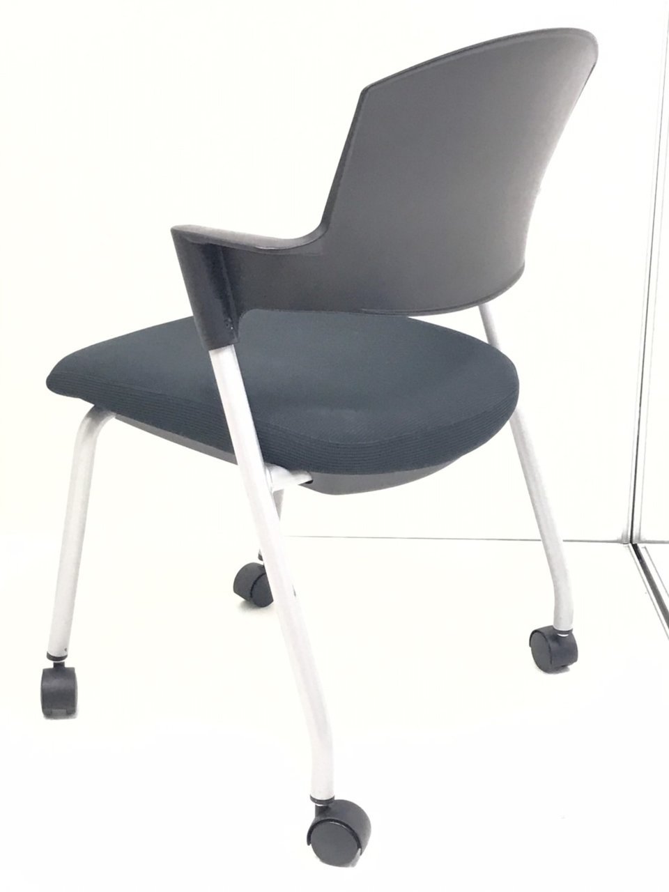 【シンプルスマートなスタッキングチェア!分厚いクッションで長時間でも快適な座り心地!】■スタッキングチェア 肘付ミーティングチェア ■固定肘 ■キャスター付 ■ブラック ■背面樹脂/コクヨ(KOKUYO/プロッティ