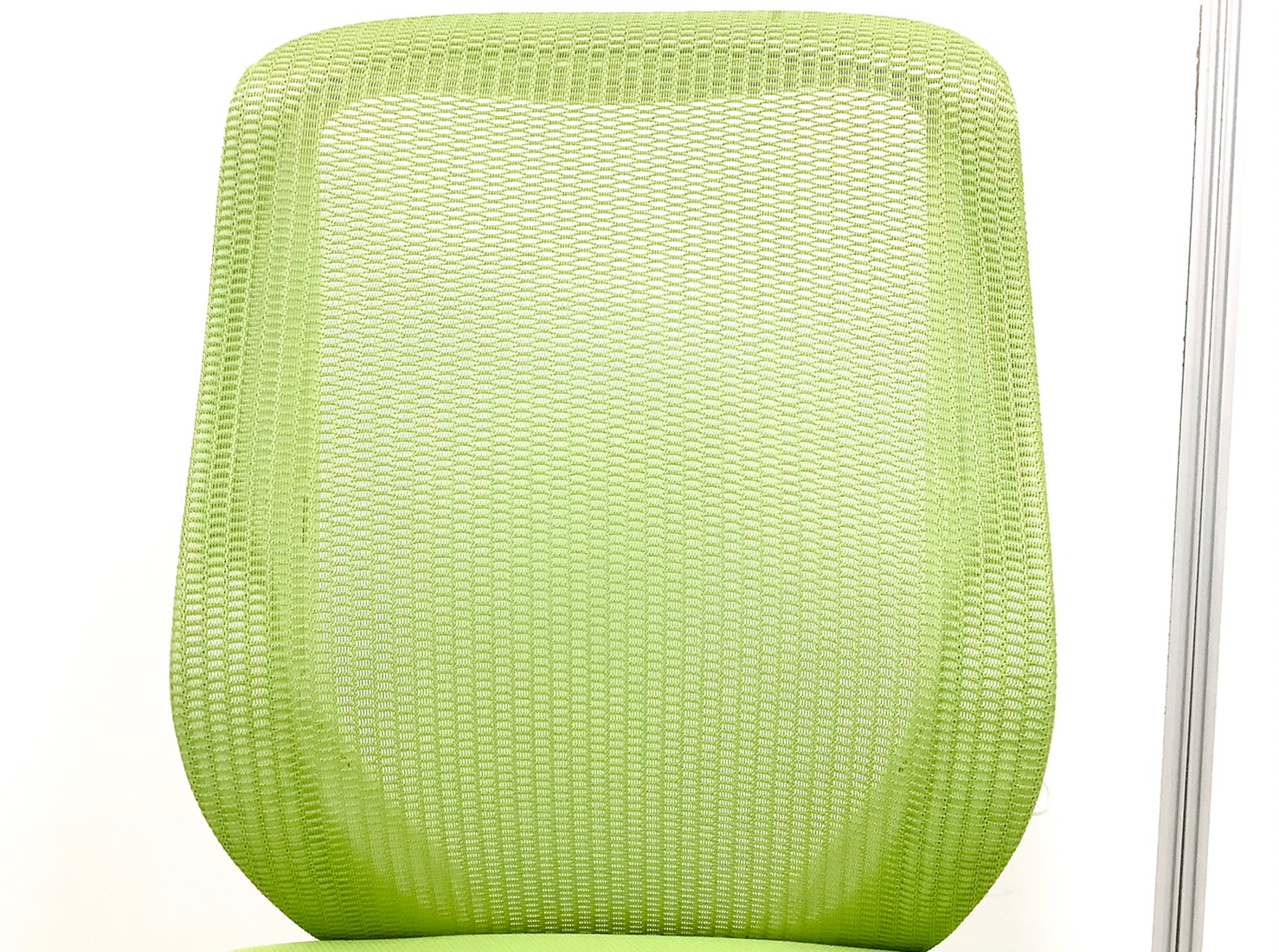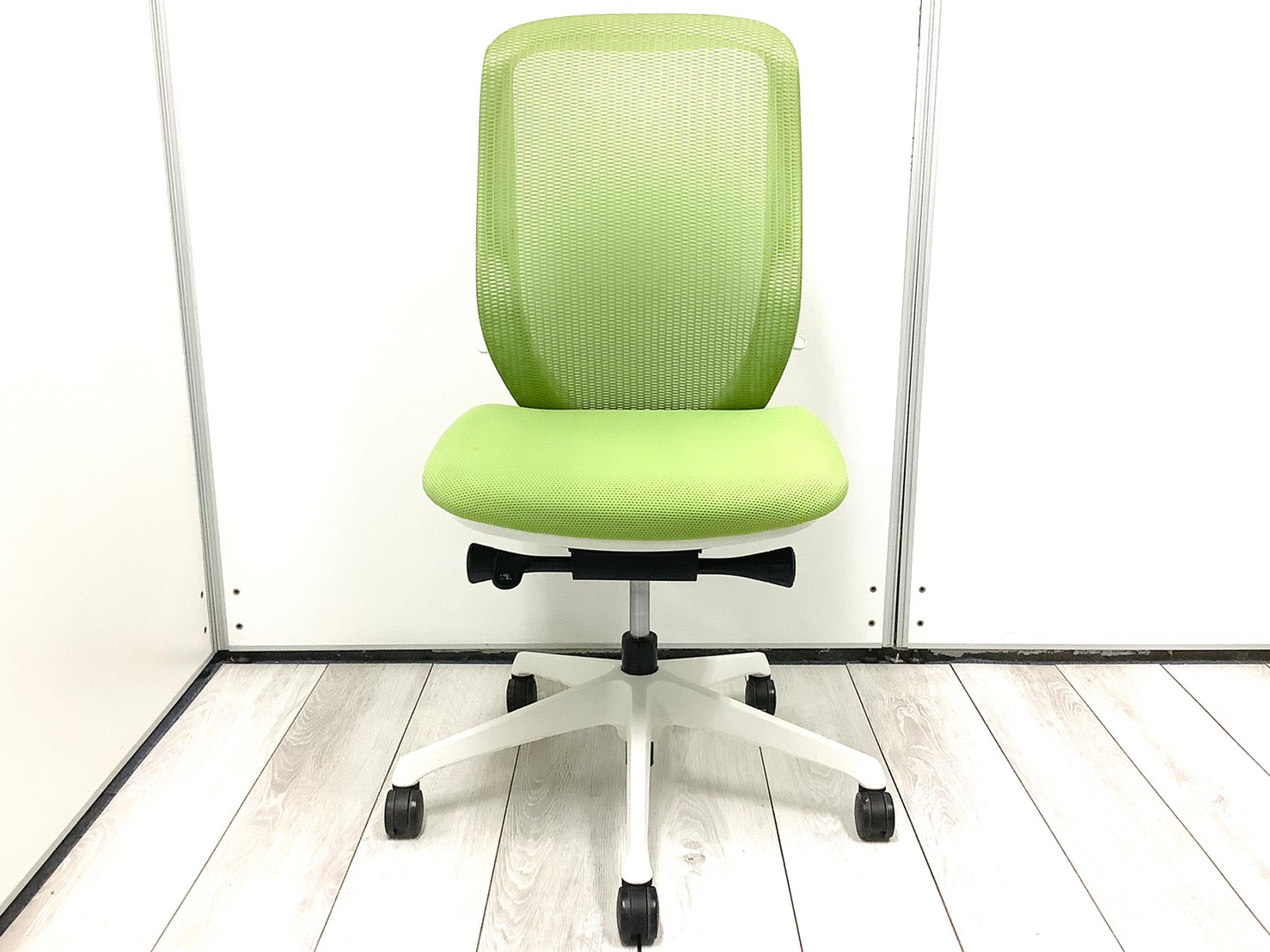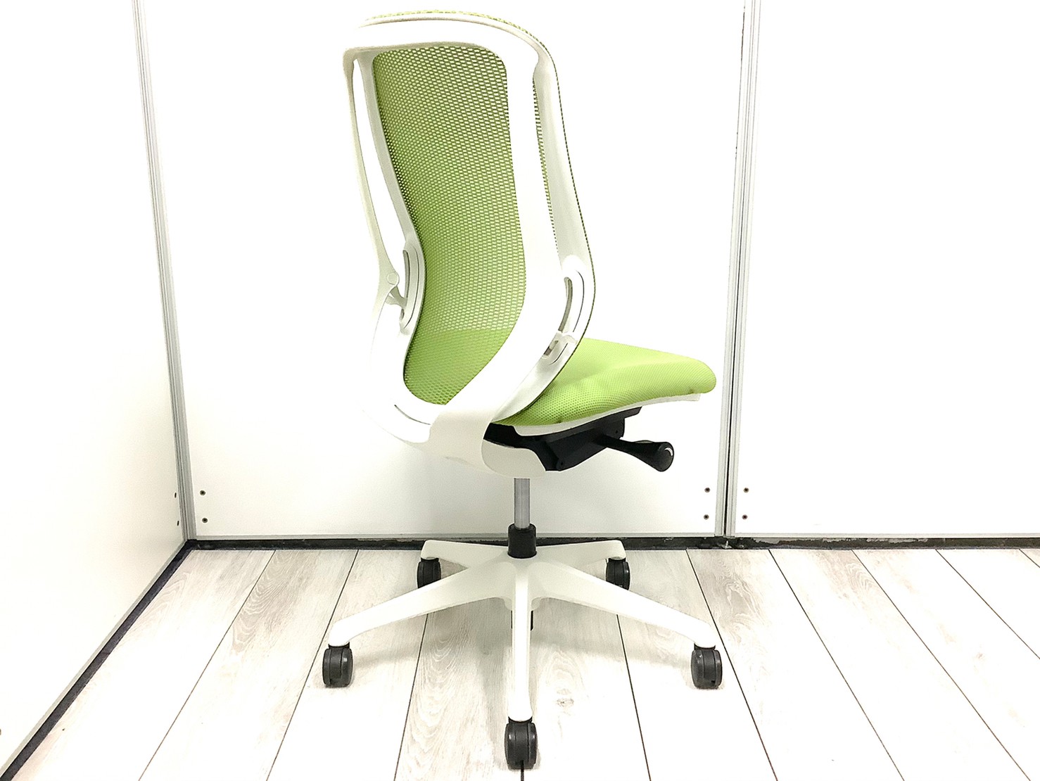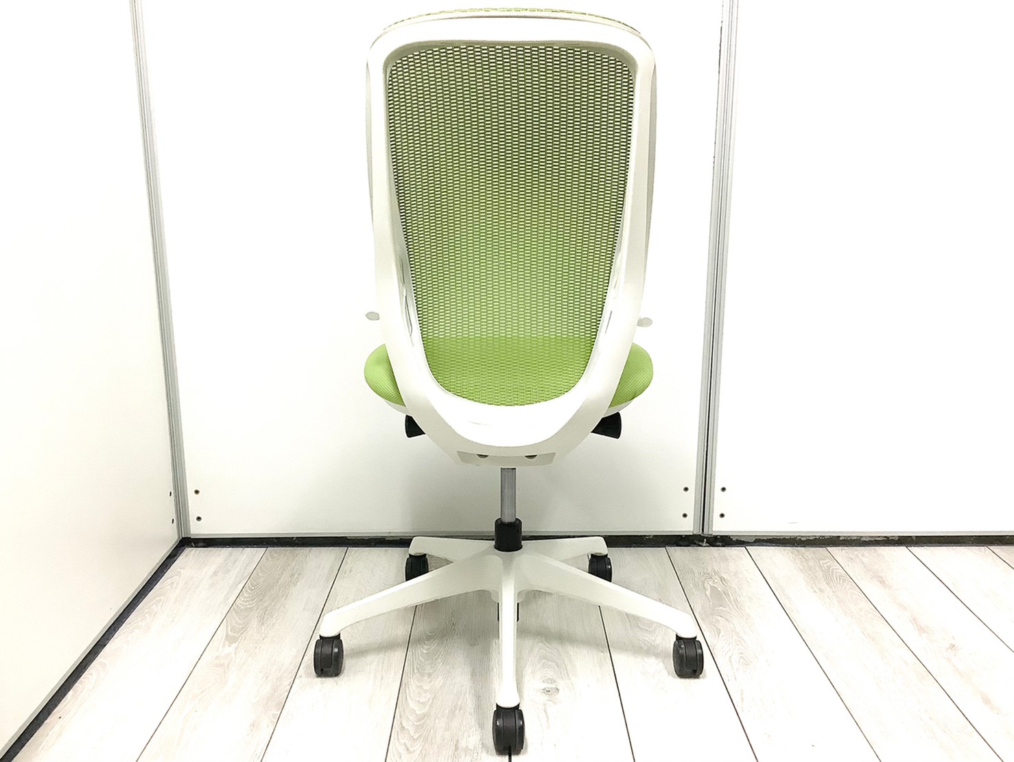 オカムラ製 シルフィーシリーズ ライムグリーン ホワイトフレーム 背面クッション コートハンガー付き 快適な座り心地を実現! 人気シリーズの背面クッションモデル! 肘無しハイバックチェア!!