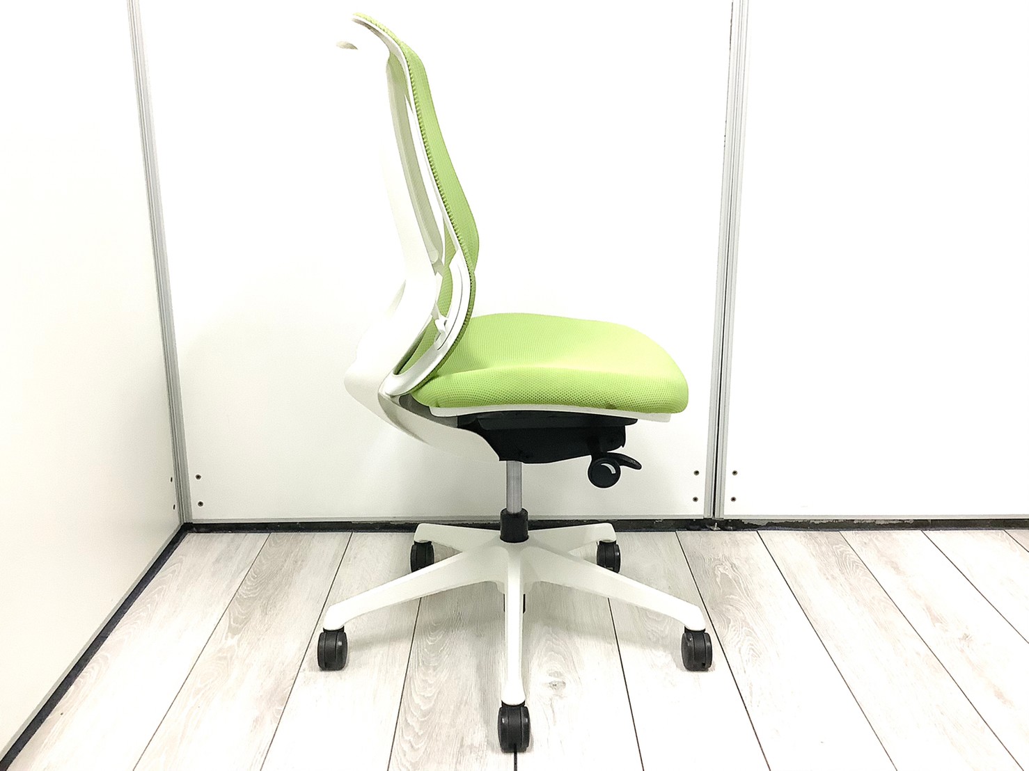 【在庫入替セール品】【定価約11万円】【快適な座り心地を実現!人気シリーズの背面クッションモデル!】■オカムラ(okamura)製 シルフィーチェア 肘無ハイバック 背面クッションタイプ ■ライムグリーン×ホワイトシェル