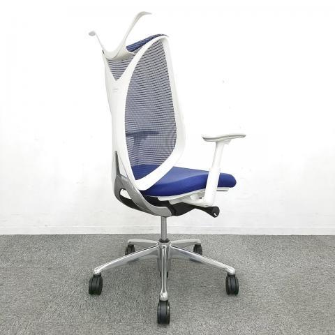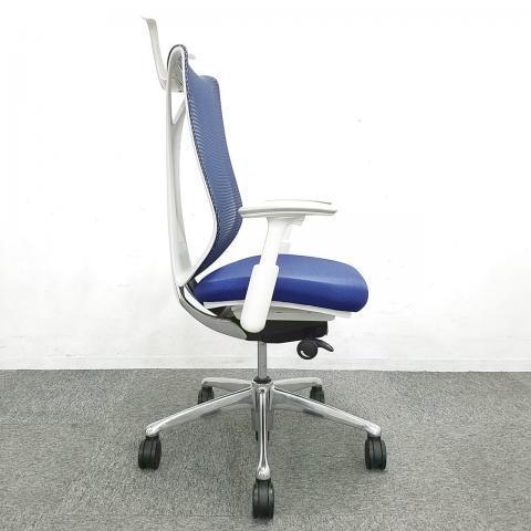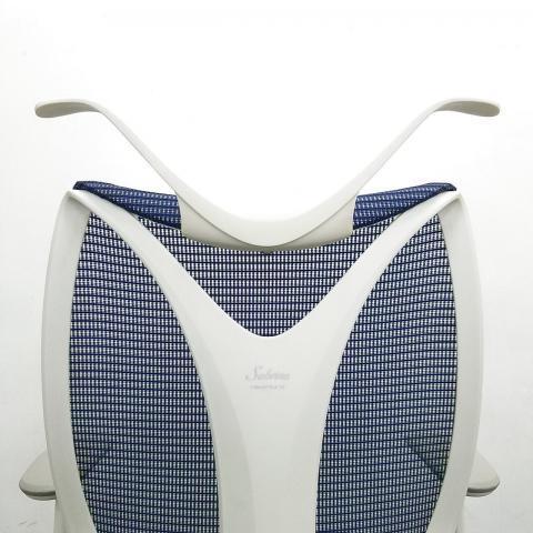 【前傾チルト付!流れるような美しいフォルムの最高級メッシュチェア!】■オカムラ(okamura)製 Sabrina(サブリナ) ハイバック 肘付き ■可動肘 ■背面メッシュ:アクアブルー 座面:ブルー ホワイトフレーム