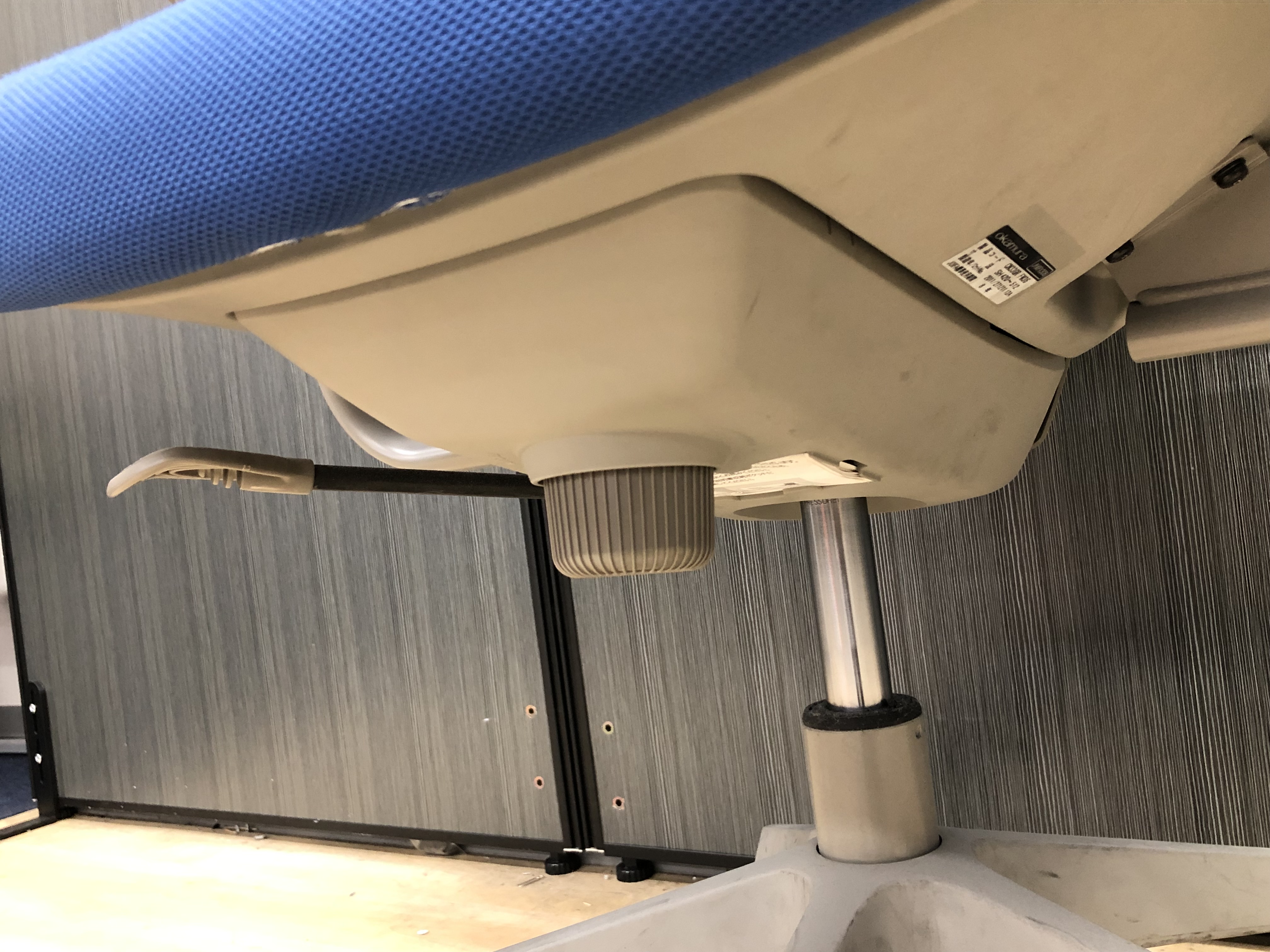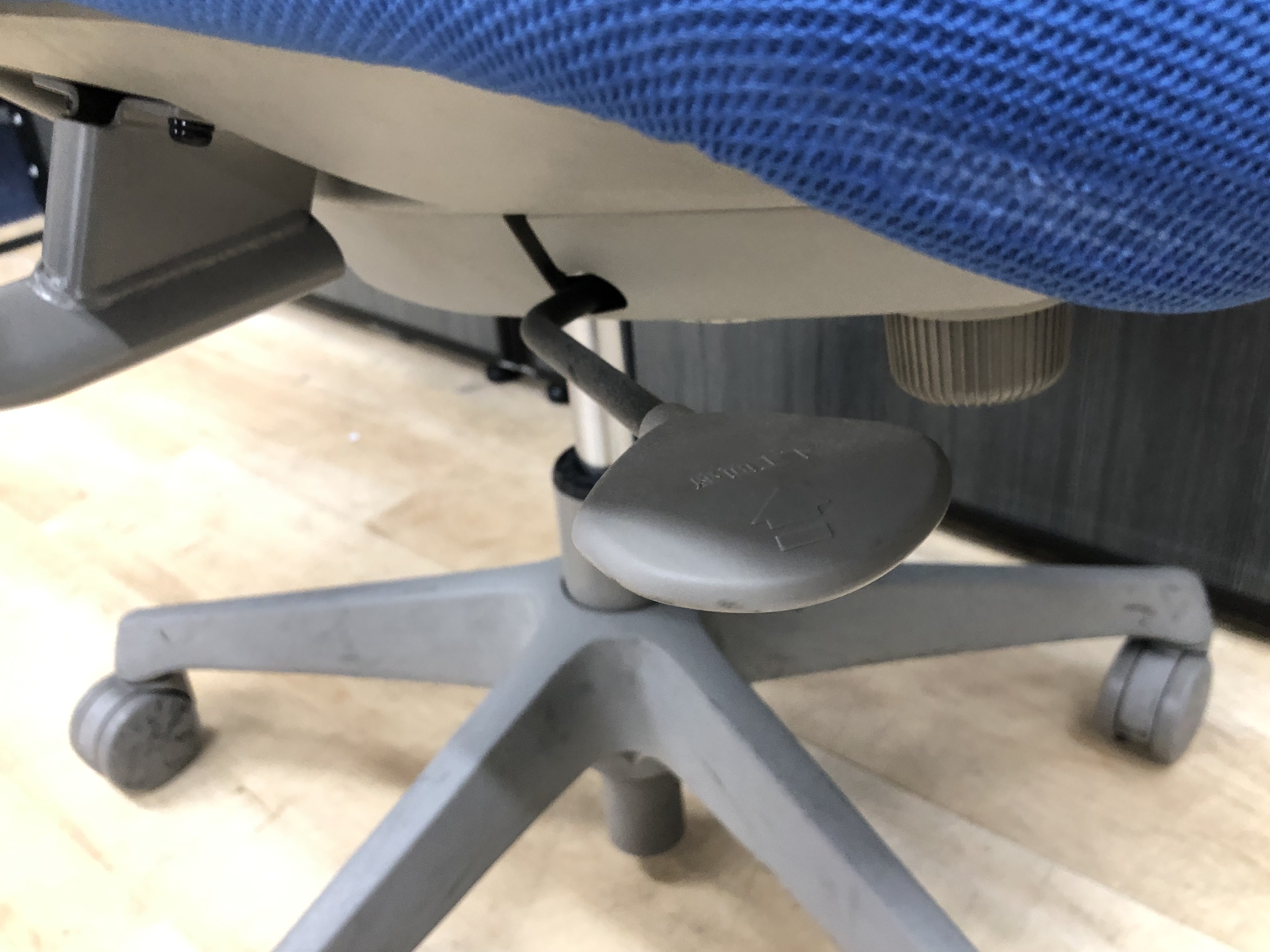 なので、「どれでも同じでしょう」と過小評価されがちですが、さすがのオカムラ製!座面の無段階上下調整やリクライニングの反発の強さ調整などに加え、リクライニンする際に足首の位置を支点にして動く、アンクルチルトリクライニングという特殊な機構が搭載されています。「人間が寄りかかる動き」にぴったりとフィットし、快適さをもたらしてくれます。