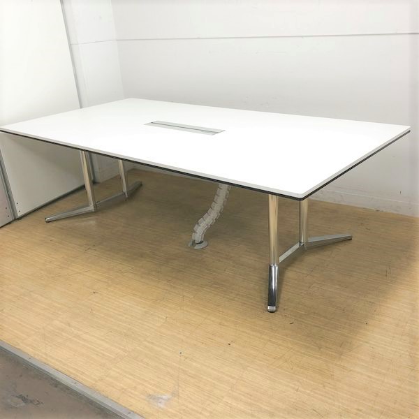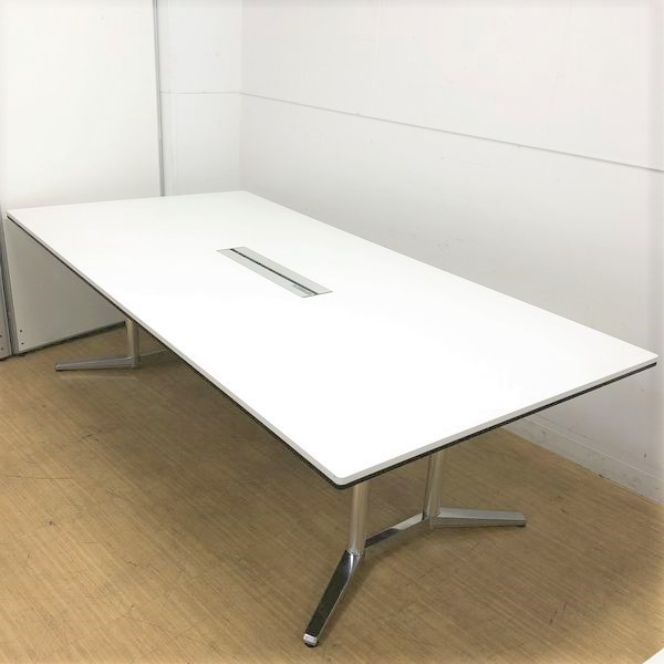 【ワンランク上のカンファレンス空間を演出!】■オカムラ ラティオシリーズ 会議用テーブル W3200mm(8~12名用) 配線ボックス付 ホワイト 【Okamura RATIOⅡ】