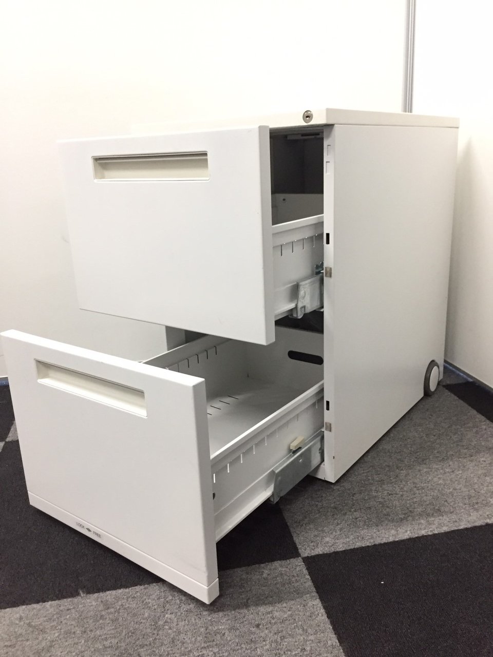 - 一部不具合ありその脇机・ワゴンの本来の効用を果たすための機能以外の一部が使用不可な状態。(例、引出が開閉しづらい、 キャスターロック機能使用不可、ラッチ不良 等がある。)