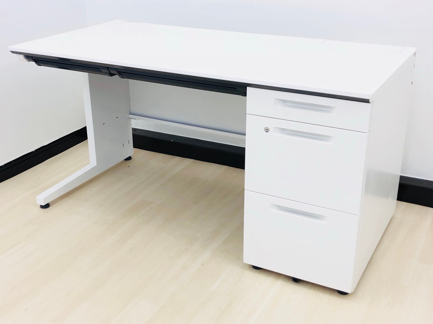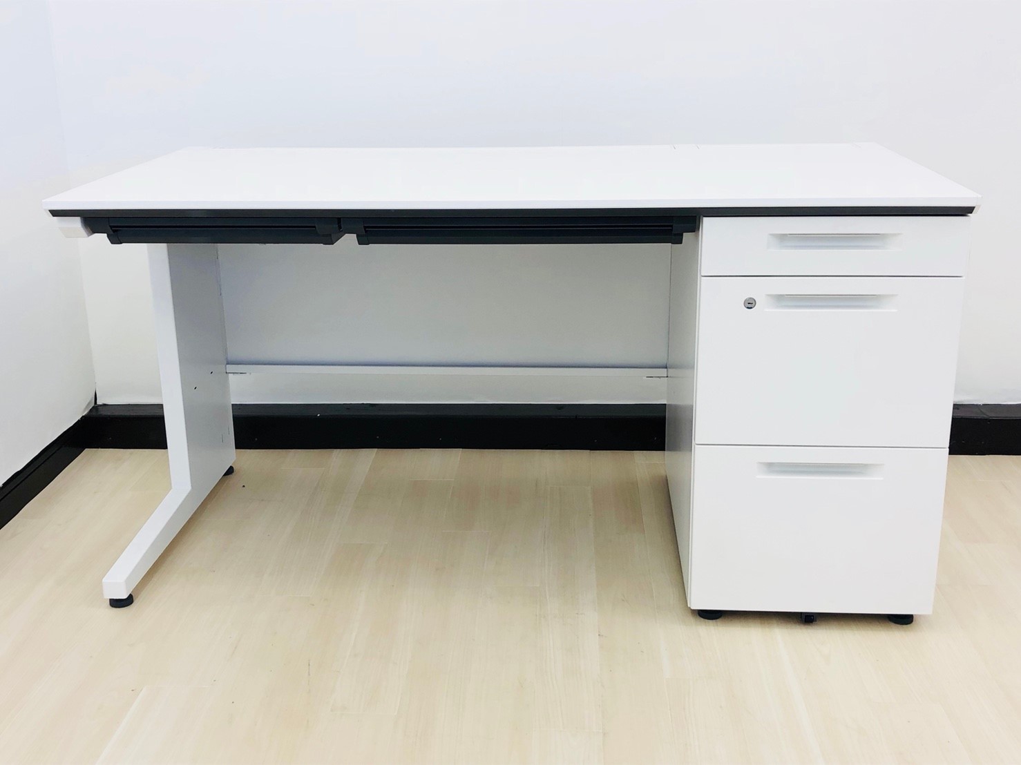コクヨ iSシリーズ 片袖机 ゆったり使用できるW1400サイズ ホワイト天板 鍵付き シリンダー錠【愛知・名古屋・豊田・静岡・浜松】