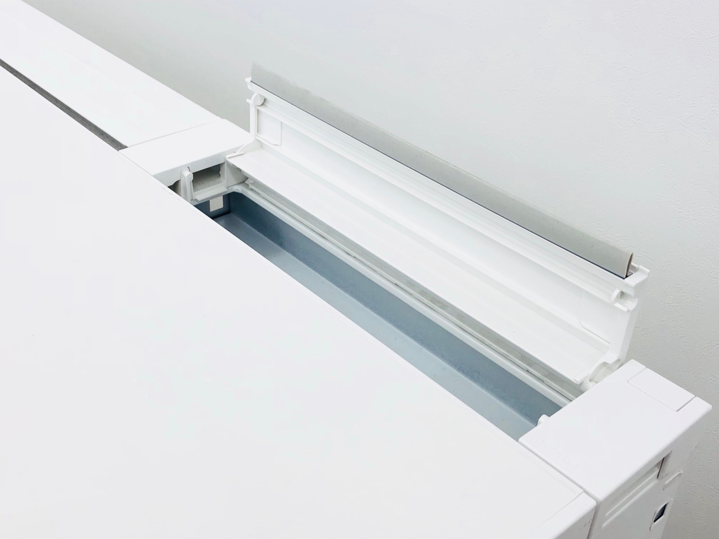 - OAタップや余長コードをコードダクトに収納できます。開閉式の配線カバーで、配線作業が簡単です。