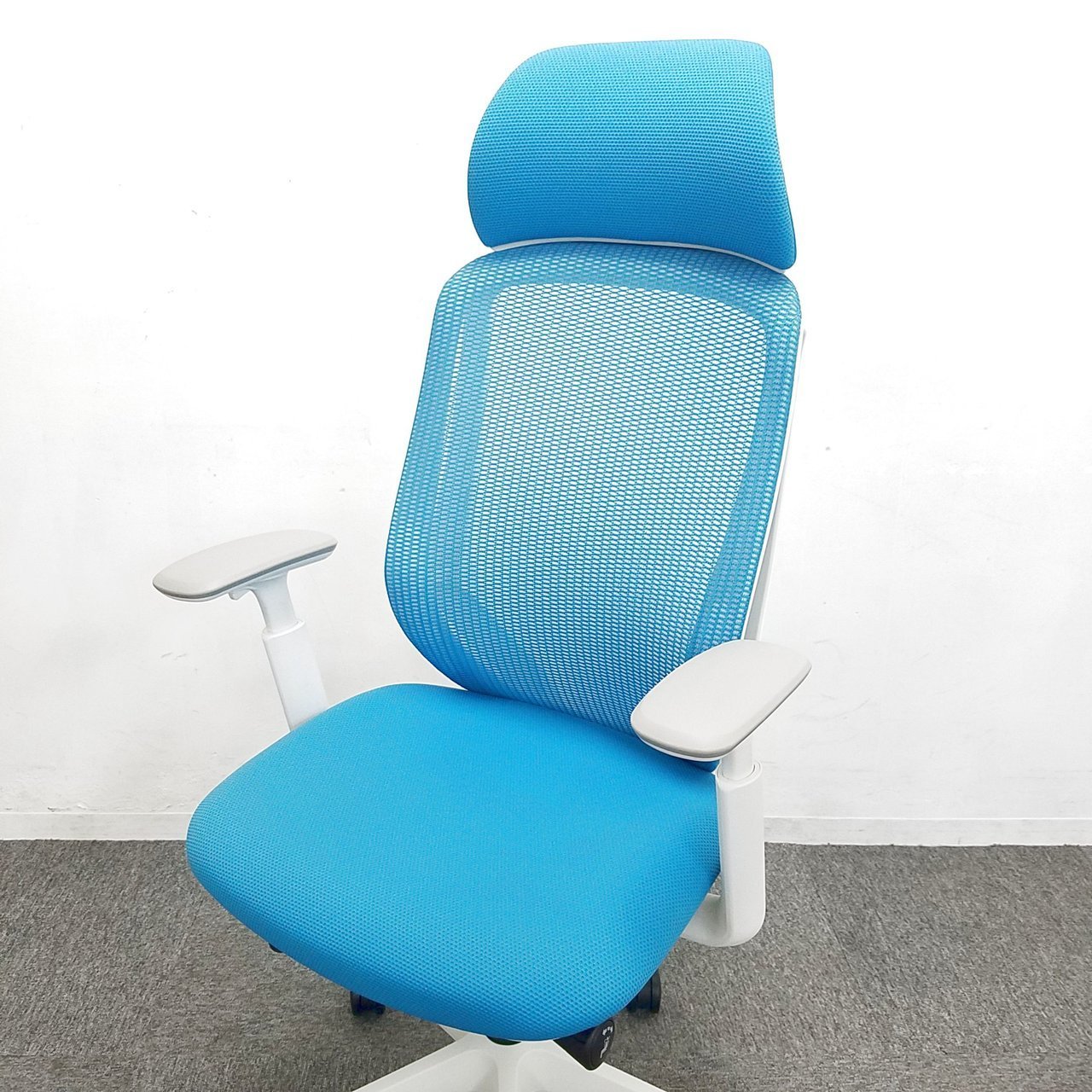 【新品ヘッドレスト交換済み】オカムラ/シルフィー/ブルー/可動肘