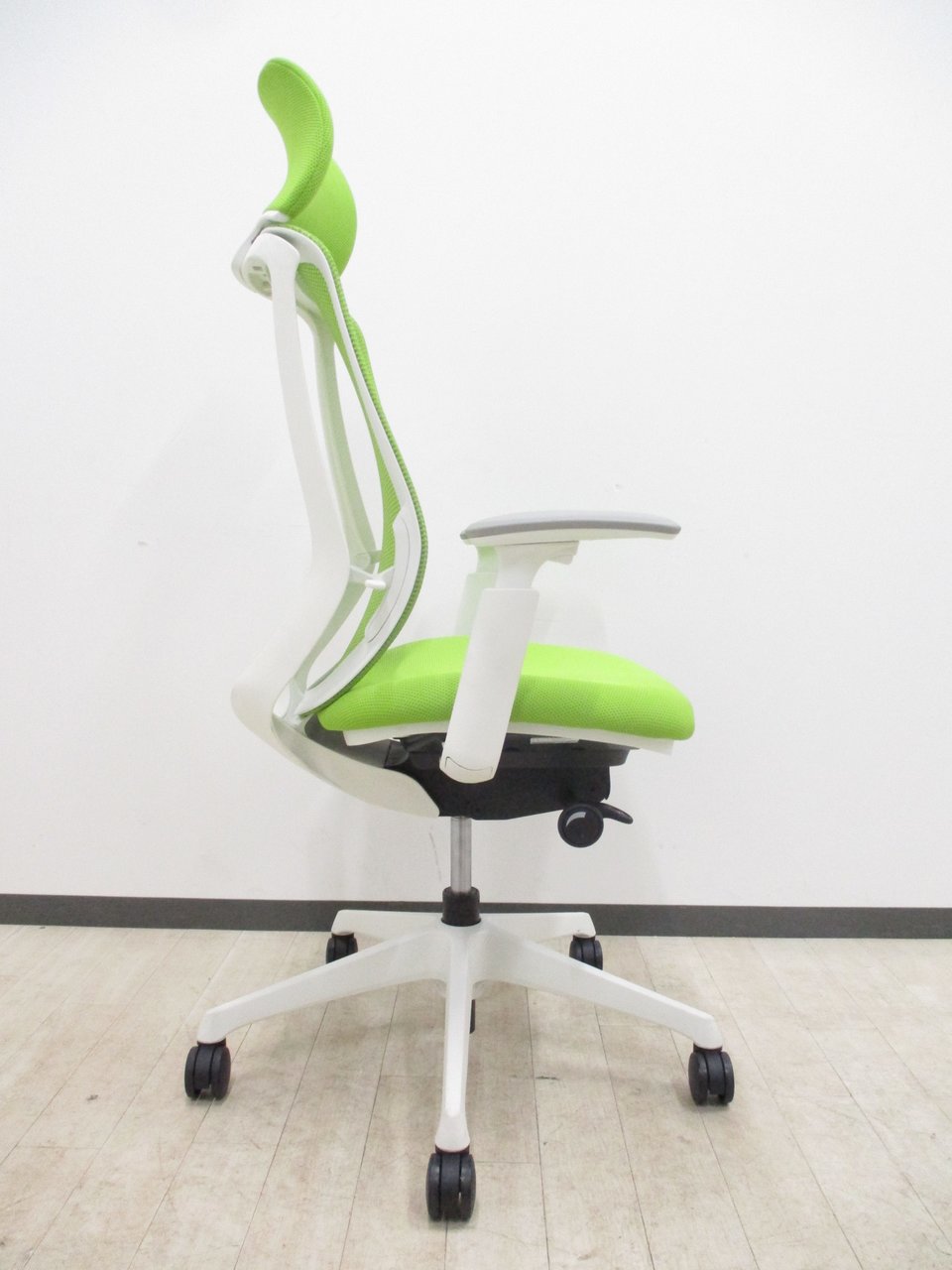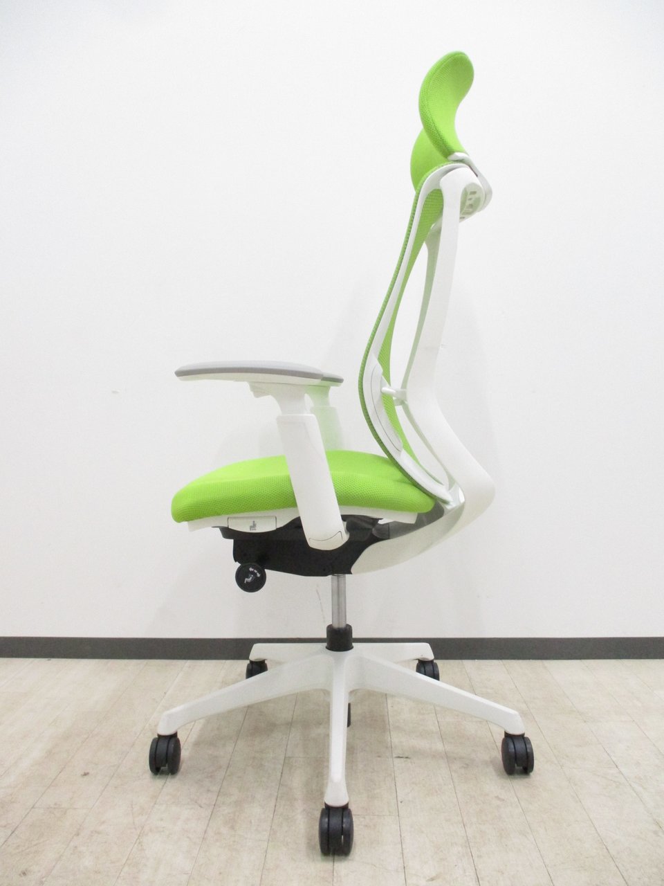 【前傾チルト機能付き!オカムラ製品で最も人気を集める高機能メッシュチェア!】■オカムラ(okamura)製 シルフィ(Sylphy)チェア ハイバック ■可動肘・ハンガー付き ■ライムグリーン × ホワイトシェル