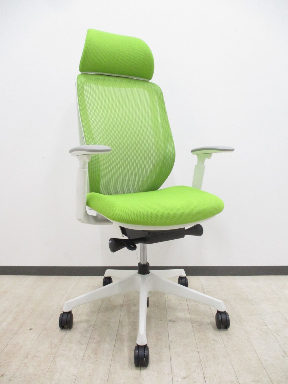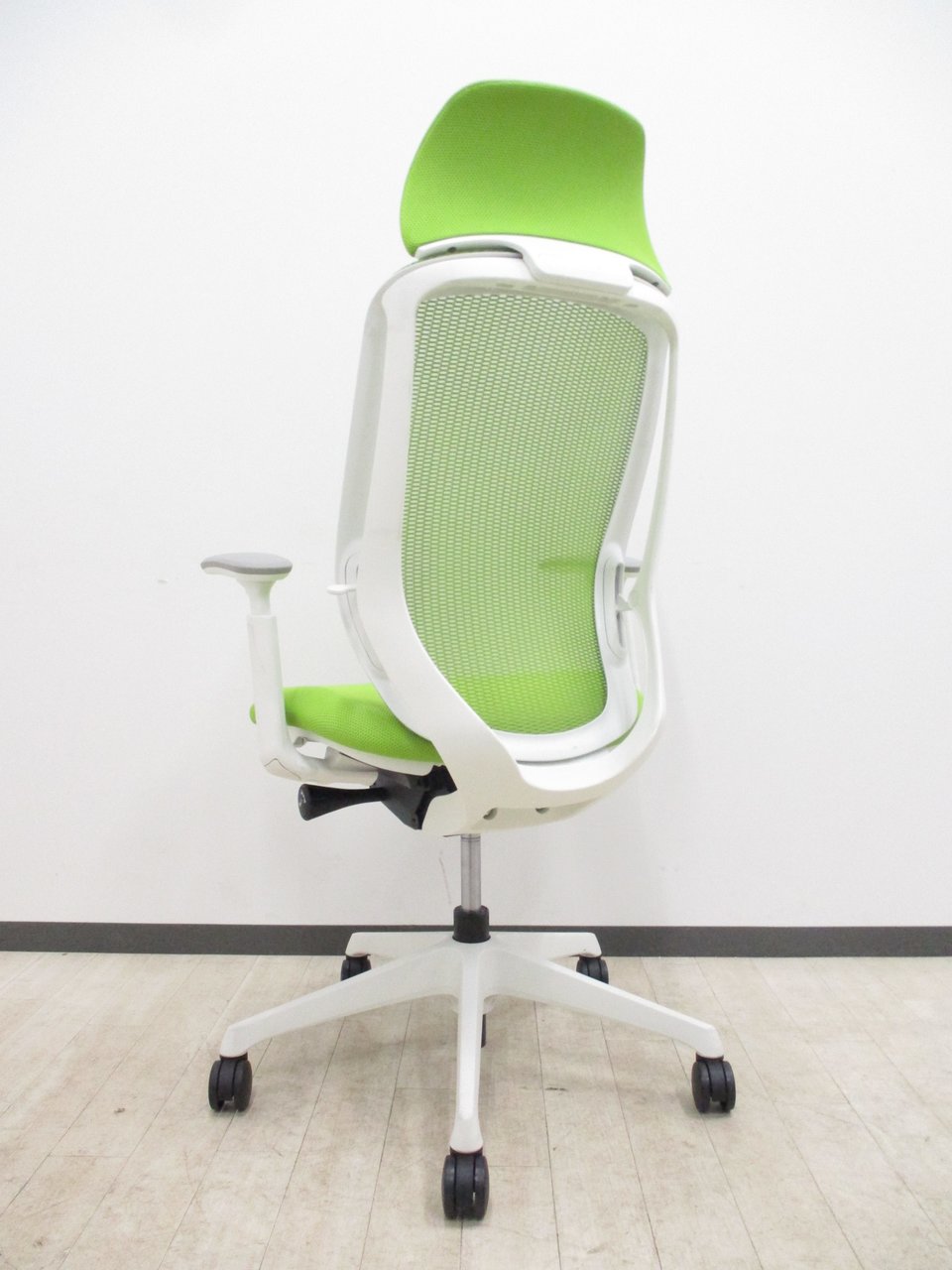 【前傾チルト機能付き!オカムラ製品で最も人気を集める高機能メッシュチェア!】■オカムラ(okamura)製 シルフィ(Sylphy)チェア ハイバック 肘付き ■可動肘 ■ヘッドレスト付き ■ライムグリーン × ホワイトシェル ※実際の商品はヘッドレスト部分のみブラックカラーとなります。
