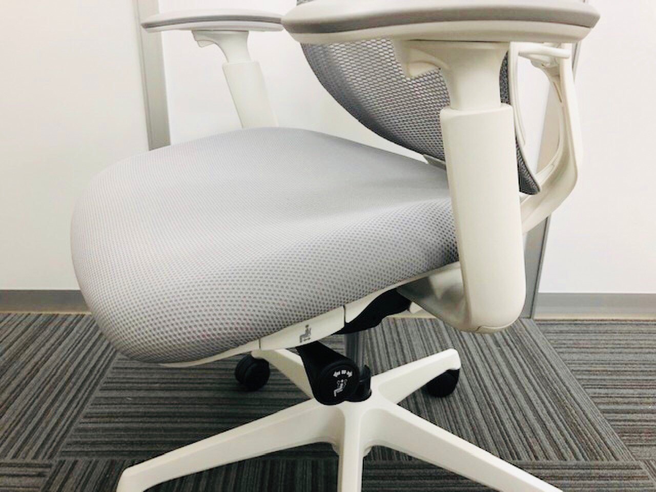 - 座面右下のダイヤル操作で、リクライニングの強弱調整が行えます。これまでのダイヤル式よりも、少ない回転数で、最弱?最強の調整が可能です。
