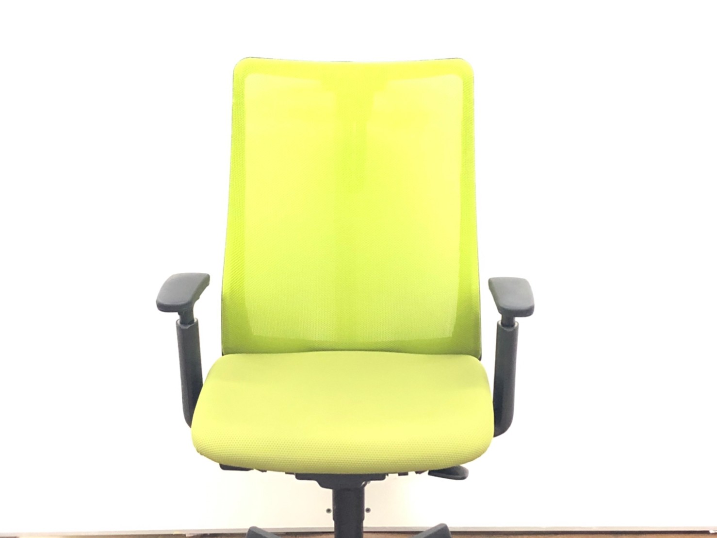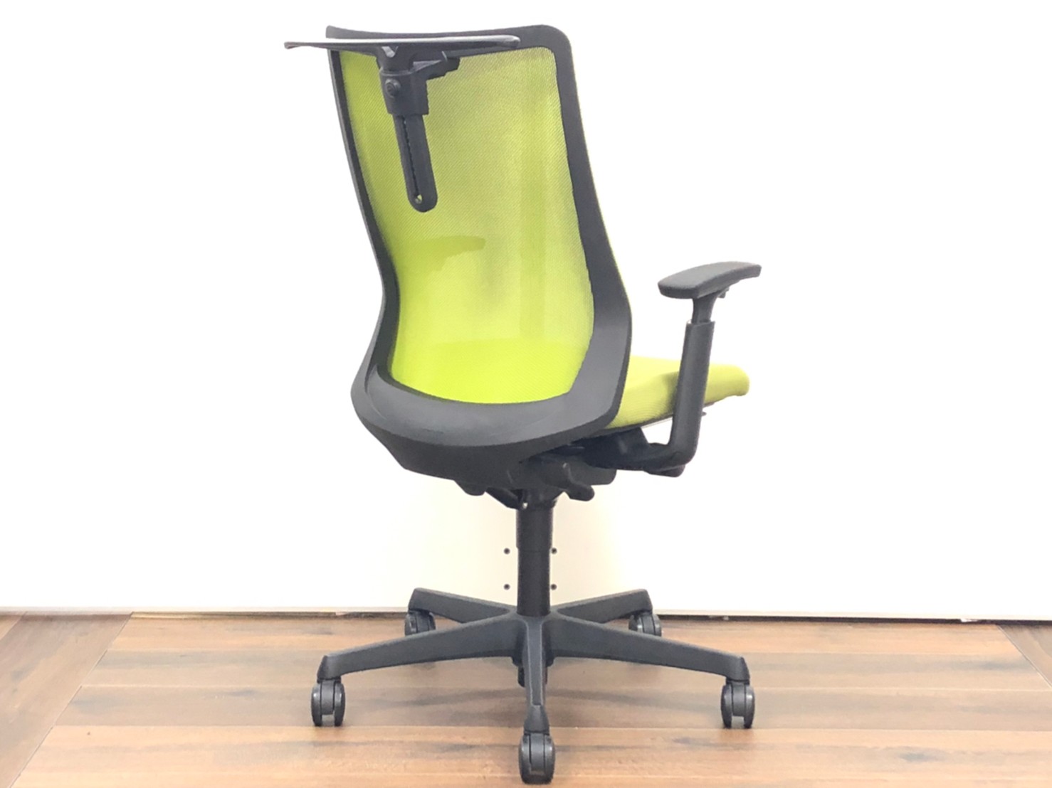 【8脚入荷】【腰まわりをしっかりホールド!長時間作業も快適フィット!】■オカムラ(okamura)製 フルーエントチェア(Fluent) 肘付ハイバック 背面メッシュ ■可動肘・ハンガー付 ■グリーン×ブラックシェル